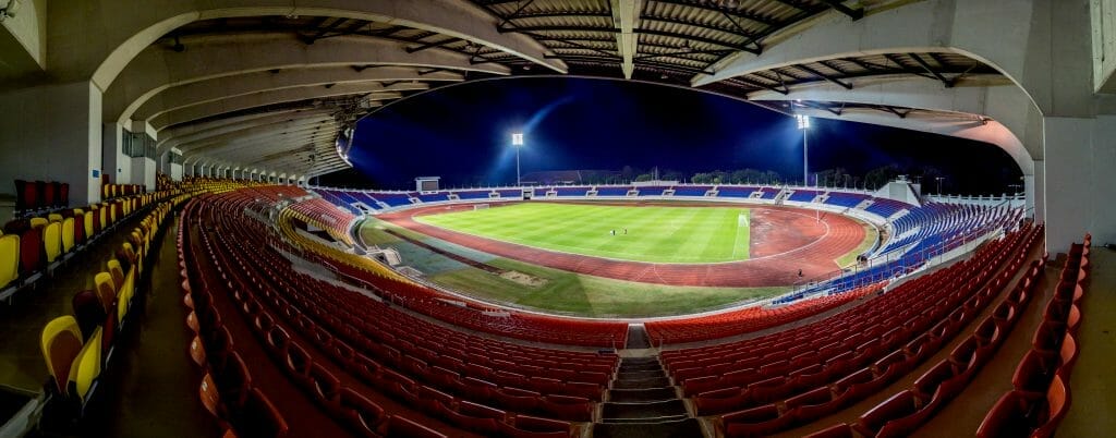 ส่วนสนามฟุตบอล 2 ก็ปรับใหญ่เช่นกัน เปลี่ยนพื้นสนามพร้อมปลูกหญ้าใหม่ เพิ่มเสาไฟพร้อมโคมไฟส่องสว่างระดับ แข่งไทยลีก 3 ได้สบายๆ ติดตั้งรั้วรอบสนาม รวมถึงการเปลี่ยนลู่วิ่งใหม่ ที่กำลังจะดำเนินการในงบของอีกแผนงานหนึ่ง