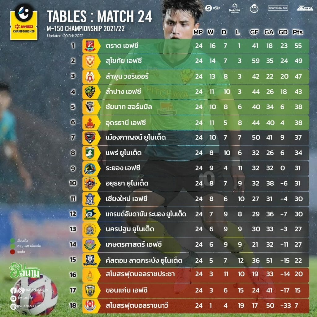ท้ายตารางเมื่อผ่านนัดที่ 24 ตั๋วหล่นชั้นทำท่าว่าจะเหลือการแย่งชิงแค่เพียงใบเดียวแล้ว เพราะ ขอนแก่น เอฟซี ที่มี 15 คะแนน ห่างจากโซนปลอดภัย 7 คะแนน แต่ก็ยังพอใจชื้นได้ว่าเจ้าของพื้นที่อย่าง คัสตอม ลาดกระบัง ยูไนเต็ด ยังคง “หยุดตรงนี้” ไม่ขยับไปไหน แต่อย่าลืม “ตราชฎา” ที่อยู่ใกล้กว่าที่ 2 คะแนน