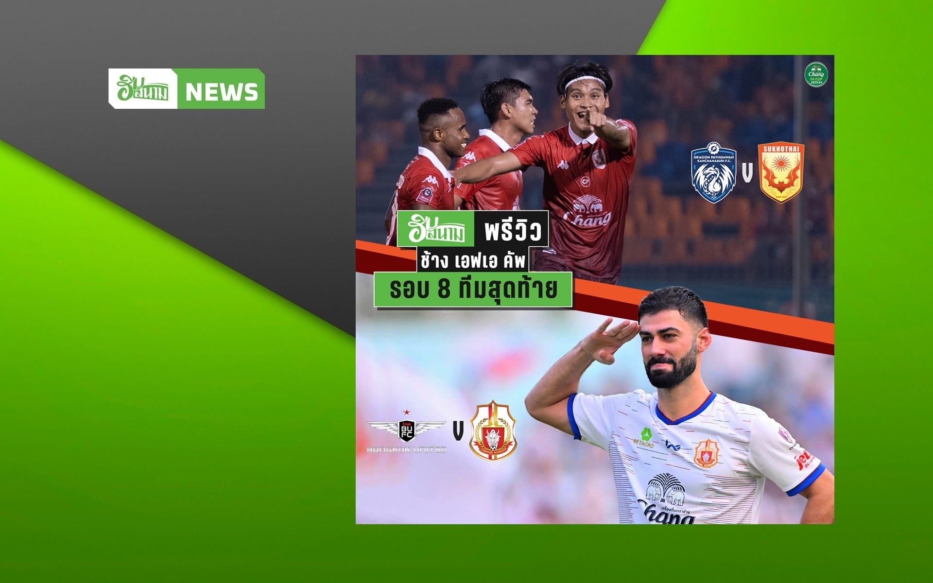 ก่อนพักเบรกช่วงสงกรานต์ ยังมีบอลถ้วยให้ลงเตะอีกหนึ่งรายการ คือ ช้าง เอฟเอ คัพ ที่เดินทางมาถึงรอบก่อนรองชนะเลิศ โดยจะลงเตะ 4 คู่ ในวันพุธที่ 10 เมษายนนี้