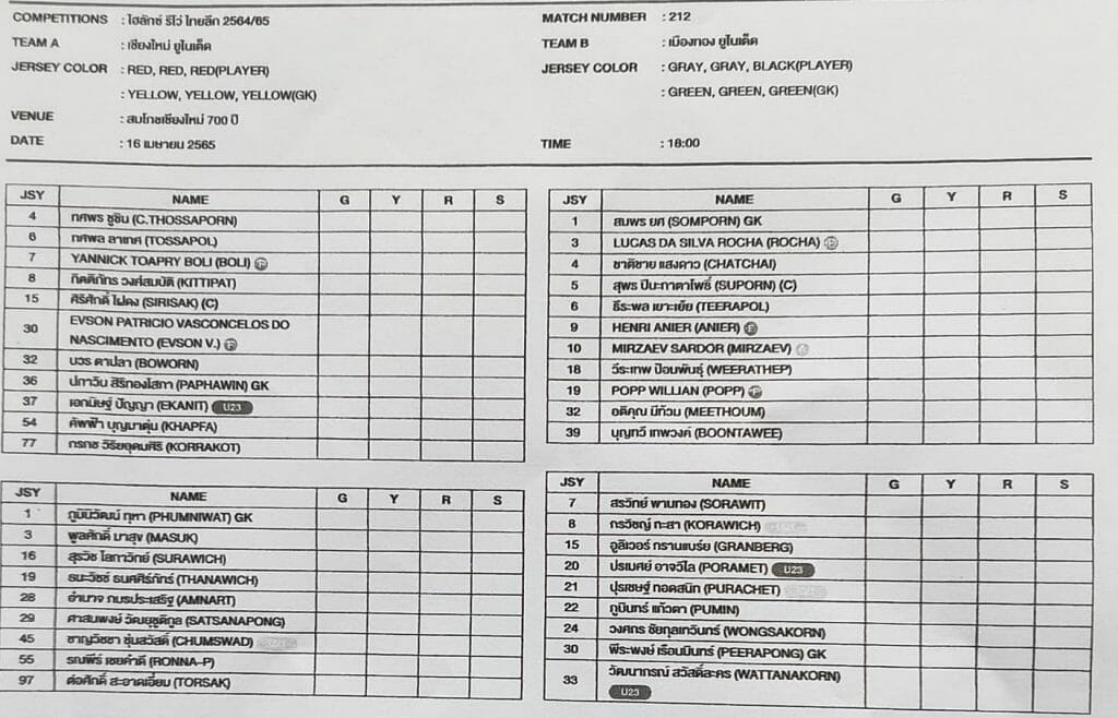 ครึ่งเวลาหลัง เชียงใหม่ ยูไนเต็ด ส่ง ศาสนาพงษ์ วัฒยุชูติกุล และ รณพีร์ เชยคำดี ลงไปเล่นแทน กรกฎ วิริยะอุดมศิริ และ เอฟสัน พราทิซิโอ และ ทางเมืองทอง ยูไนเต็ด ส่ง สรวิทย์ พานทอวง และ กรวิชญ์ ทะสา ลงมาเล่นแทน ธีระพล เยาะเย้ย และ อติคุณ มีท้วม