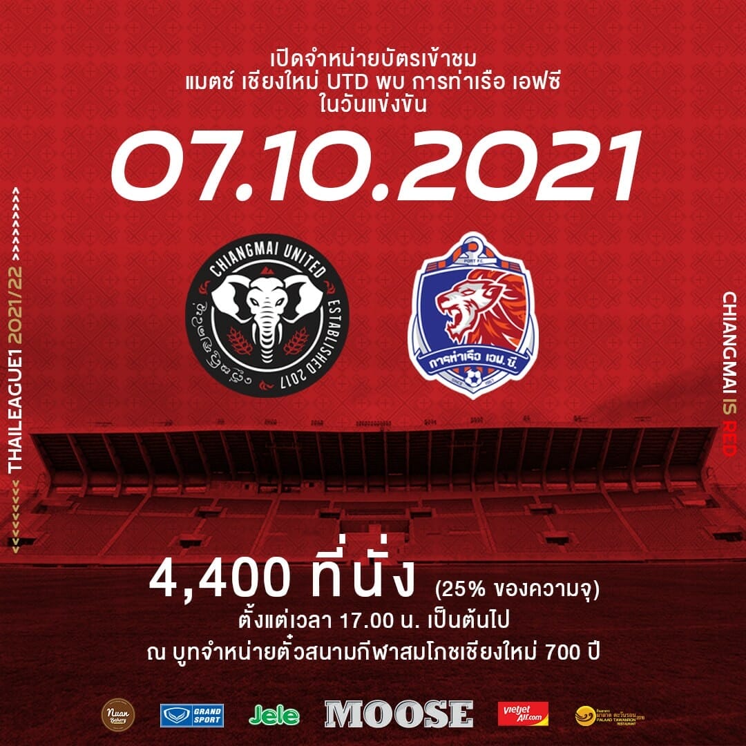 นัดต่อไป เชียงใหม่ ยูไนเต็ด จะเปิดบ้านพบ การท่าเรือ เอฟซี ในวันพฤหัสบดีที่ 7 ตค นี้ เริ่มเวลา 19.00 น. สนาม 700 ปี โดยนัดนี้ เปิดให้แฟนบอล เข้าชม 25% ของความจุสนาม(ประมาณ 4,400 ที่นั่ง) โดยต้องปฏิบัติตามเกณฑ์ที่ทาง ศบค จ.เชียงใหม่กำหนด (ติดตามได้ทางหน้าเพจ ของสโมสรเชียงใหม่ยูไนเต็ด)