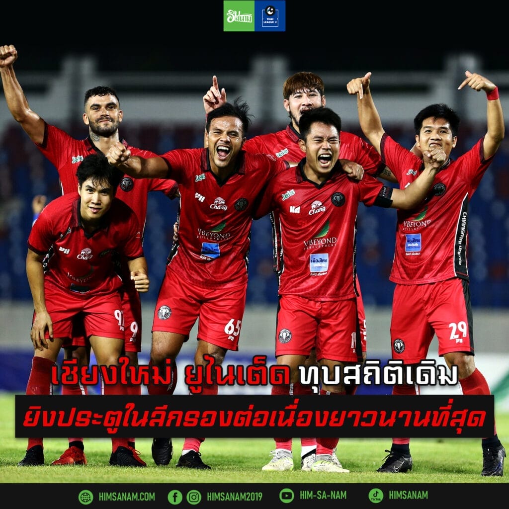 ซึ่งนับว่า ทุบสถิติเดิมที่ทัพ “จ๊างเผือก” เอง เคยยิงประตูในลีกรอง ต่อเนื่องกันสูงสุดไว้ที่ 11 นัด เมื่อซีซั่น 2020/21 โดยเป็นปีที่พวกเขาได้ตำแหน่งรองแชมป์ และก้าวขึ้นสู่ไทยลีกในปีนั้นได้สำเร็จ