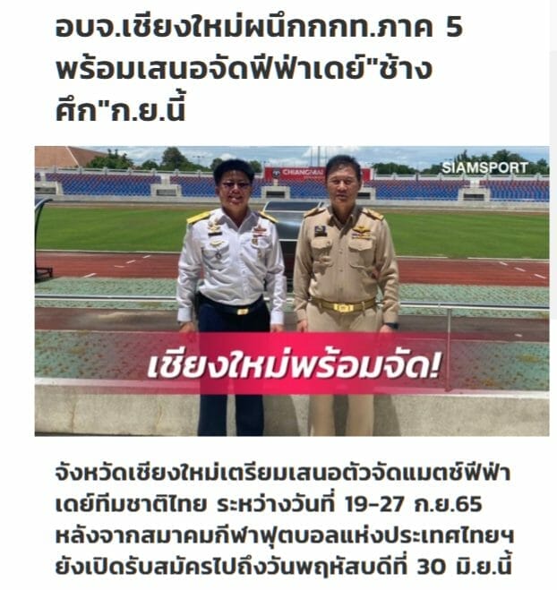 สมาคมฟุตบอลแห่งประเทศไทย วางกรอบให้กับจังหวัดที่สนใจ เสนอตัวเป็นเจ้าภาพจัดการแข่งขันฟุตบอล International ‘A’ Match ในช่วงปฏิทินฟีฟ่า เดย์ ระหว่างวันที่ 19-27 กันยายน 2565 ซึ่งการแข่งขันดังกล่าวจะจัดเป็นแบบทัวร์นาเมนต์ 4 ทีม