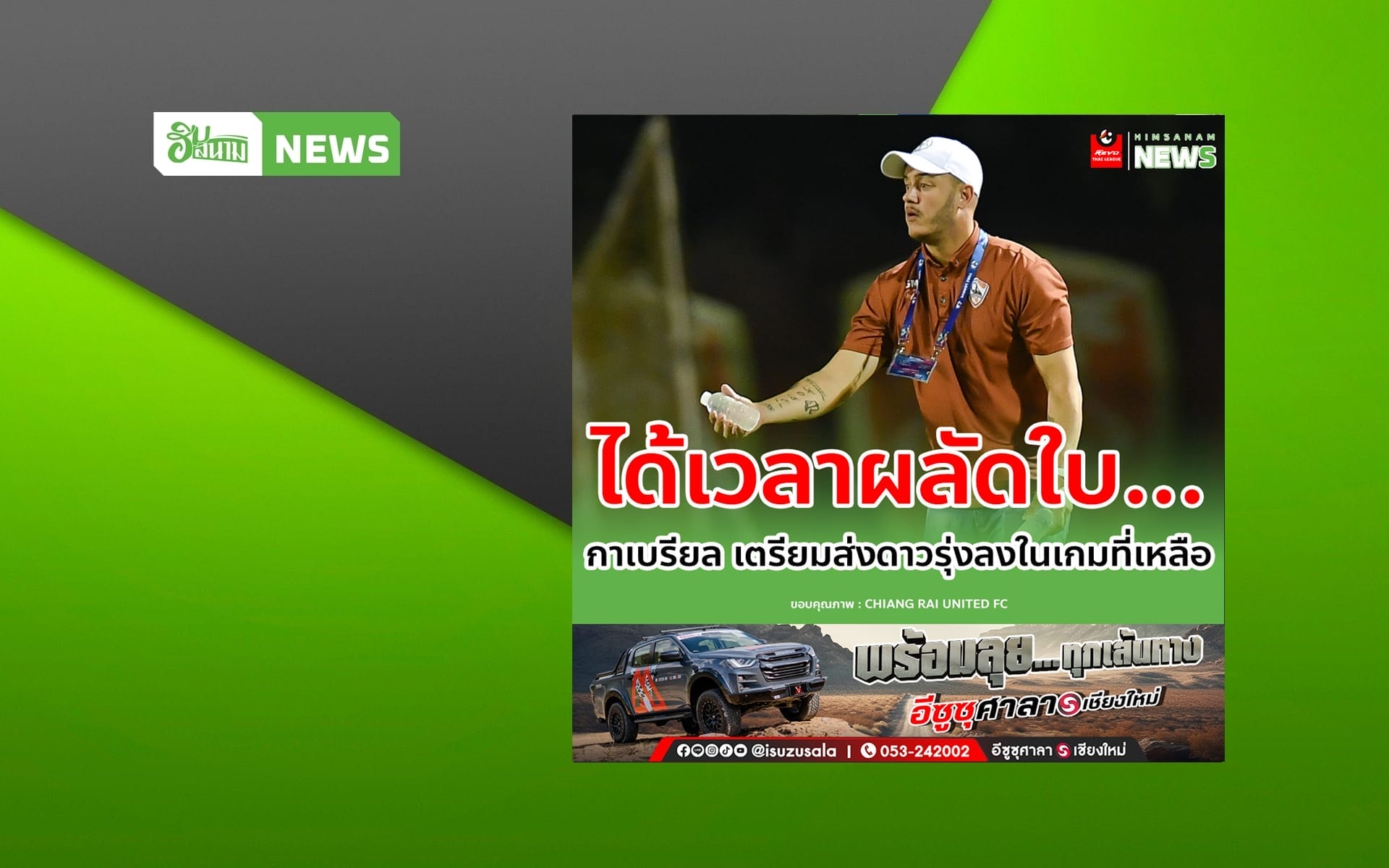 น่าจับตาอนาคตนักเตะกว่างโซ้ง หลัง “กาเบรียล มากัลเญส” โค้ชของ สิงห์ เชียงราย ยูไนเต็ด ได้ให้สัมภาษณ์หลังบุกไปเจ๊า โปลิศ เทโร เอฟซี 0-0 ในศึก รีโว่ ไทยลีก ฤดูกาล 2023/24 นัดที่ 27 ในวันเสาร์ที่ผ่านมา (4 พ.ค. 67) ซึ่งช่วงหนึ่งของการให้สัมภาษณ์ของ กาเบรียล มากัลเญส เป็นเรื่องเกี่ยวกับอนาคตของนักเตะ โดยเขาได้เผยว่า…“ใน 4-5 เกมหลัง เราแพ้แค่บีจี ถือเป็นเรื่องที่สำคัญในการหนีตกชั้น ซึ่งถือว่ามันจบแล้วสำหรับเชียงราย เกมที่เหลือก็ตั้งเป้าหมายอยากจะเก็บ 6 คะแนนเต็มกับเกมในบ้านที่เหลือสองนัด และเกมเยือนก็หวังมีแต้มให้ได้ และหลังจากนี้ผมอยากจะให้นักเตะที่คิดว่าจะเป็นอนาคตของเชียงรายได้ลงเล่น เพื่อเก็บประสบการณ์ เพราะท่านประธาน (บิ๊กฮั่น) ก็ได้แจ้งแล้วว่าจะมีการปรับเปลี่ยนทีม อาจมีนักเตะหลายๆราย ที่ไม่ได้ไปต่อกับทีมในฤดูกาลหน้า รวมถึงสต๊าฟบางคนด้วย”