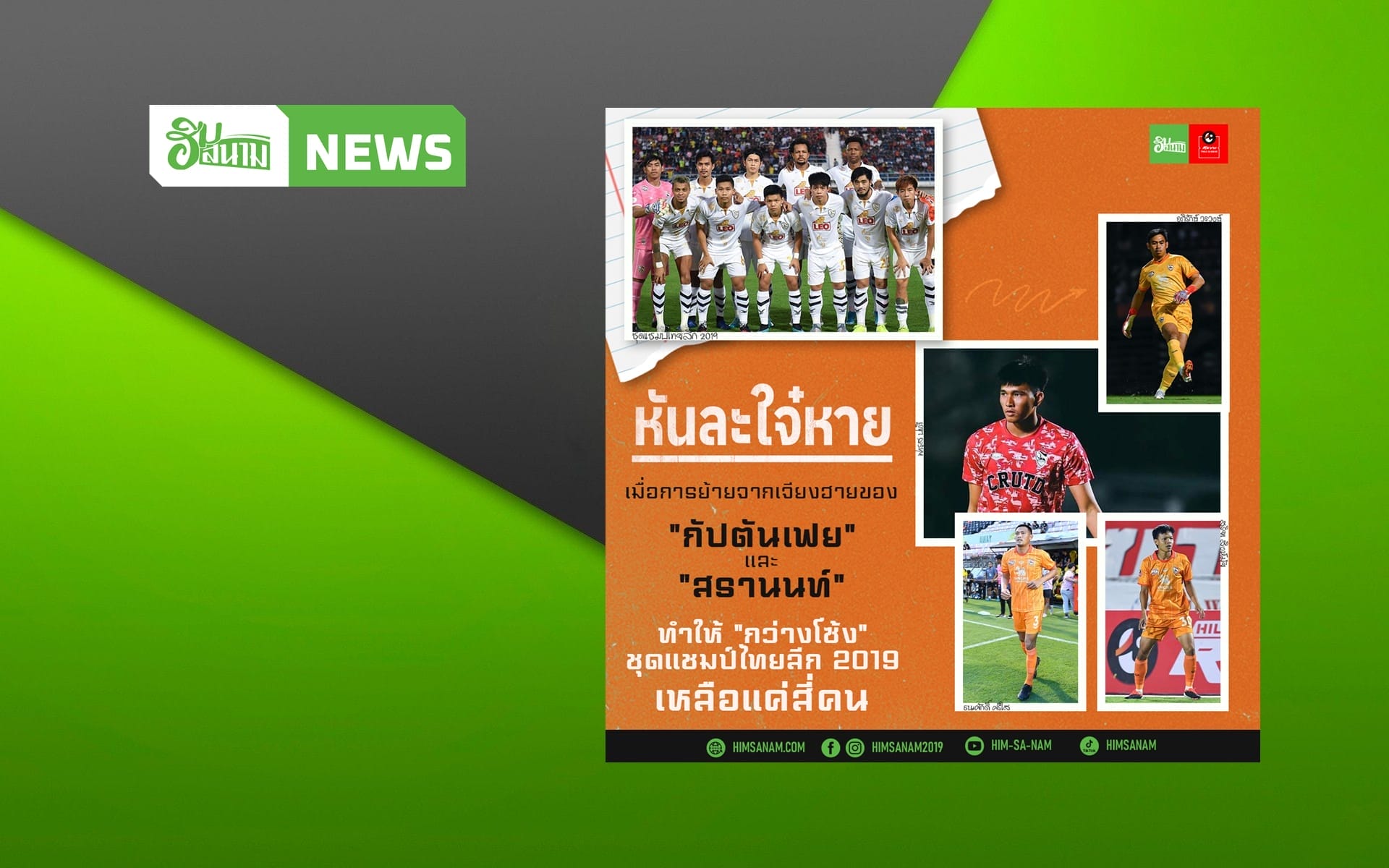 หลังการประกาศกลางรายการไลฟ์สดของ “บิ๊กฮั่น” มิตติ ติยะไพรัช ประธานสโมสรสิงห์ เชียงราย ก่อนเกมเปิดบ้านเจอเมืองทอง ที่แจ้งถึงการย้ายไปสู่บีจี (แหมแล้ว) ของ ศิวกรณ์ เตียตระกูล กับ นายด่านทีมชาติไทย “โอ” สรานนท์ อนุอินทร์