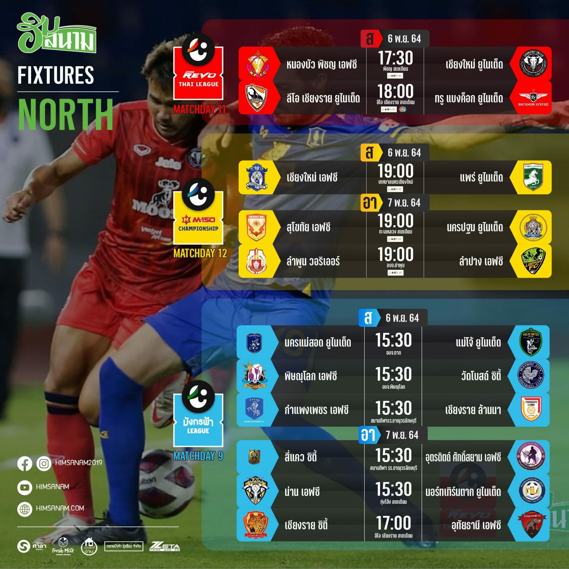 ส่วนโปรแกรมคู่อื่นๆ แม่โจ้ ยูไนเต็ด อันดับ 6 จะบุกมาเก็บสามแต้มในการเล่นเกมเยือนเป็นนัดที่สามติดต่อกันได้หรือไม่ นครแม่สอด ยูไนเต็ดจะเป็นผู้ให้คำตอบ เพราะเจ้าบ้านเองก็คงอยากชนะเสียที ในการเล่นในบ้าน เพราะแพ้รวด 3 นัดแบบทำประตูไม่ได้ …. คู่ต่อมา สองทีมที่มีแนวทางเดียวกัน คือเน้นสร้างมากกว่าเน้นซื้อ กำแพงเชร เอฟซี พบ เชียงราย ล้านนา บอลเด็กกำลังห้าวภายใต้การคุมทีมของกุนซือมากประสบการณ์ของโซนเหนือทั้งสองทีมมาเจอกัน น่าสนุกไม่น้อย… คู่สุดท้าย เกมของทีมท้ายตาราง น่านเอฟซี อันดับ10 เปิดบ้านพบ นอร์ทเทิร์นตาก ยูไนเต็ด อันดับสุดท้าย มาดูกันว่า ผู้มาเยือนจะถึงเวลากับการควานหาชัยชนะได้รึยัง ส่วนเจ้าบ้าน จะยังคงรักษาเอกลักษณ์ ใน 4 นัดหลังที่ไม่ว่าผลออกมาจะเป็นอย่างไร ขอยิงนัดละสองลูกขึ้นไป ได้ต่อไปหรือไม่ พบกันใหม่สัปดาห์หน้า และ ขอให้ทุกท่าน Enjoy กับเกมลูกหนัง ของทีมในโซนเหนือในสุดสัปดาห์นี้ นะครับ