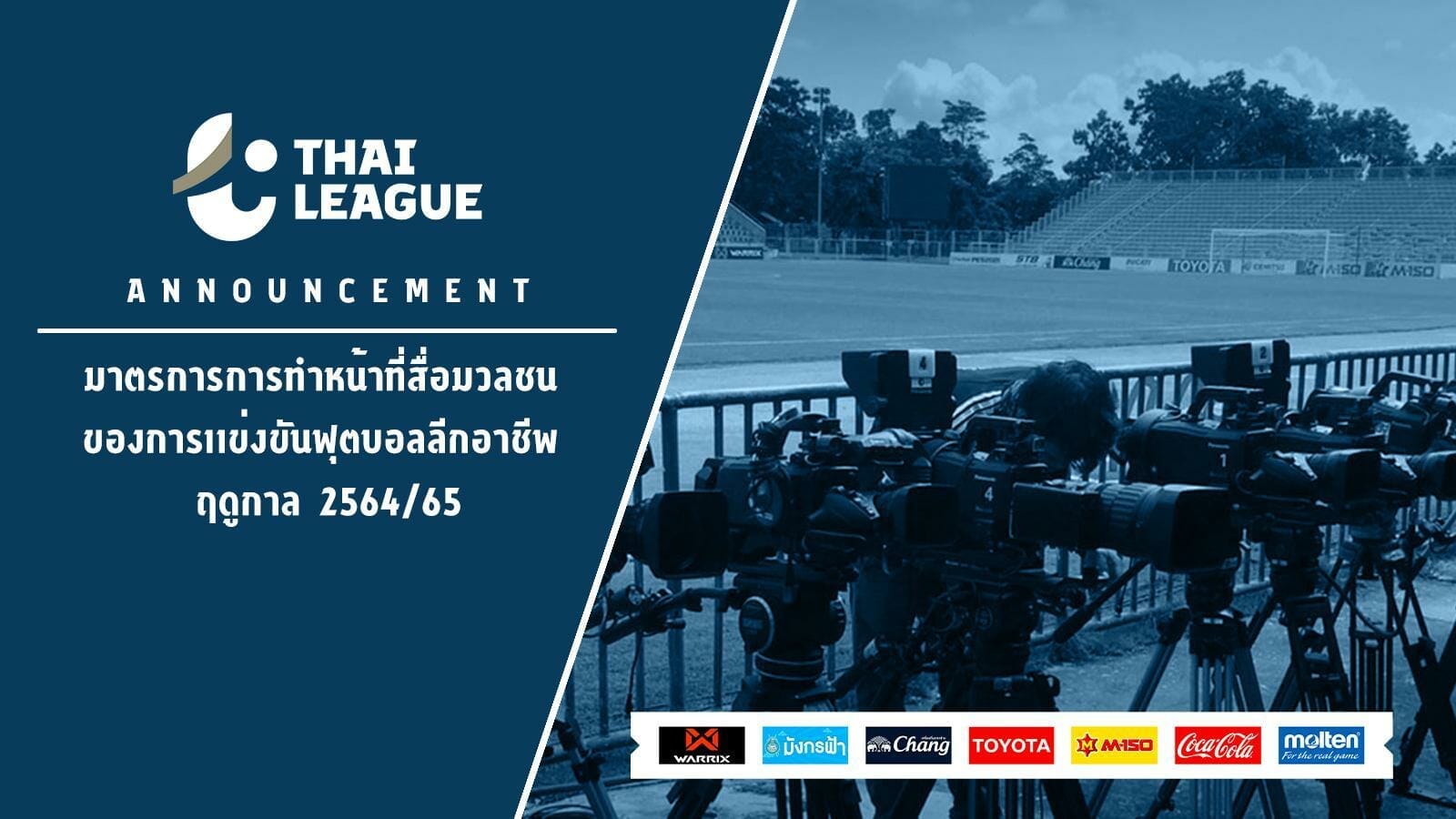 หลัก ๆ สำหรับข้อแนะนำในส่วนต่างๆ สำหรับสื่อมวลชน ในการปฏิบัติหน้าที่ในการแข่งขันฟุตบอลลีกอาชีพเมืองไทย ฤดูกาล 2564/2565 (2021-22) ผู้สื่อข่าว อนุญาตให้นั่งทำงานโต๊ะละ 1 คนเท่านั้น และแน่นอนต้องสวมหน้ากากตลอดเวลา ห้ามรับประทานอาหารในบริเวณมีเดียทรีบูน ไม่อนุญาตให้ทำกิจกรรม ณ พื้นที่ MIXED ZONE ทุกกรณี