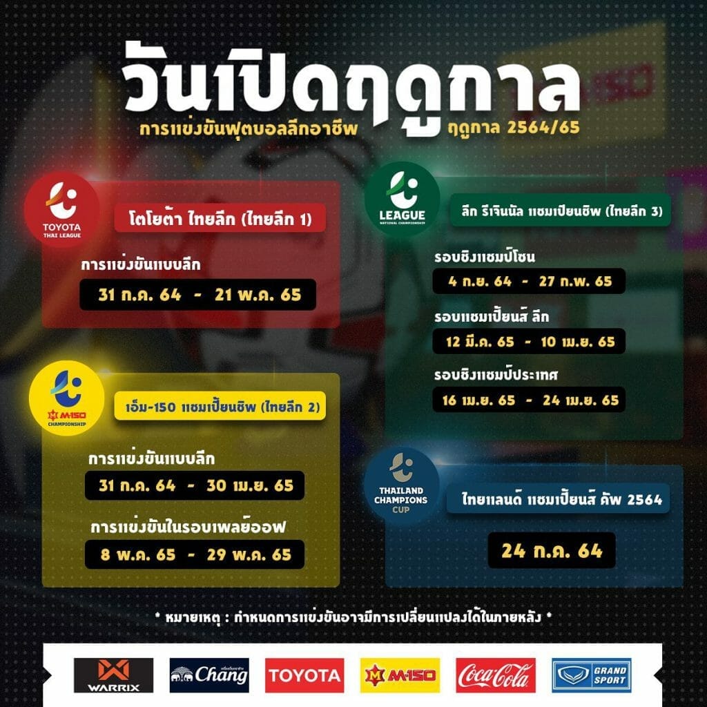 กำหนดการที่ไทยลีกประกาศออกมาแล้ว ฤดูกาล 2563/64 มีรายละเอียดดังนี้