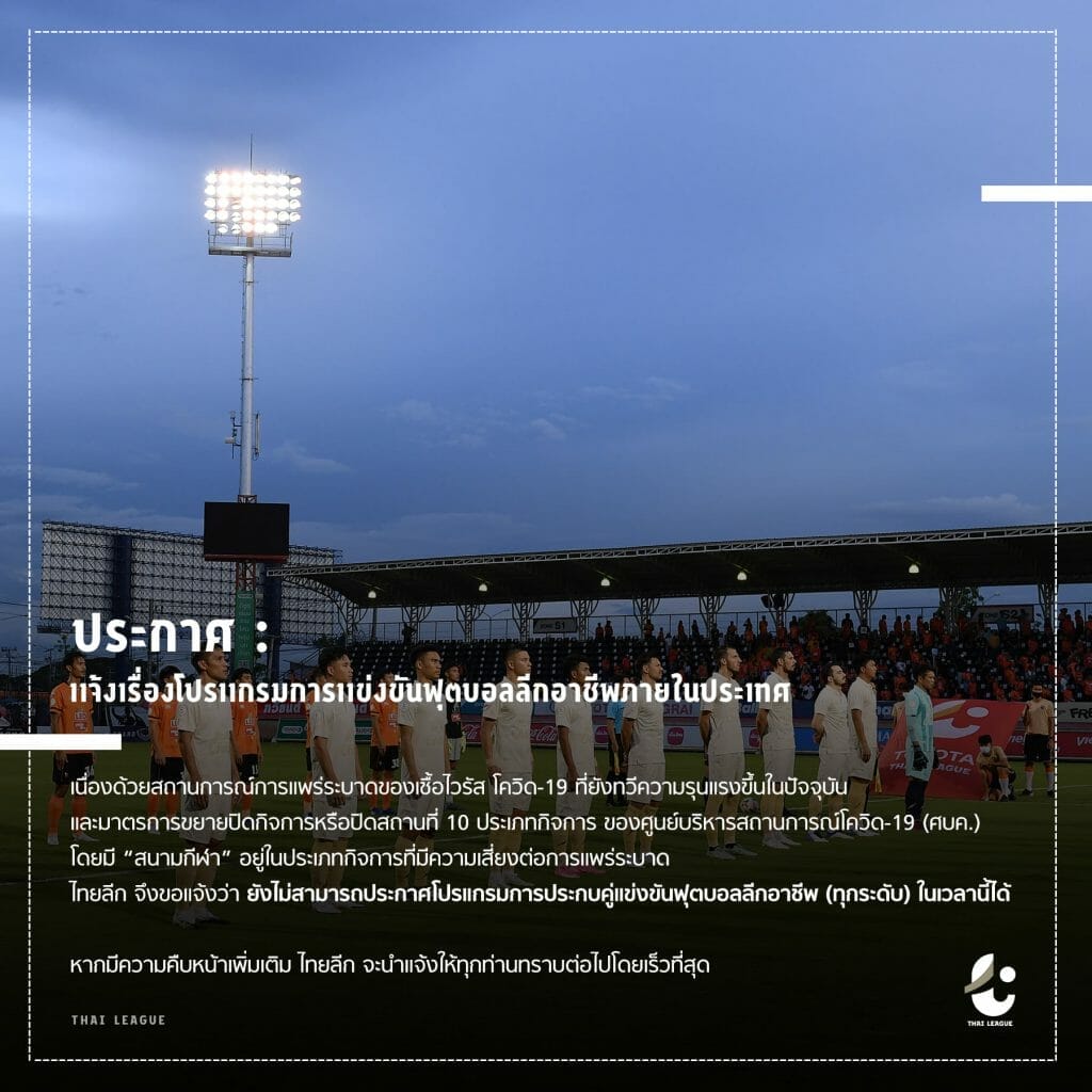 แต่ด้วยสถานการณ์โรคโควิด-19 ในประเทศไทย ยังคงไม่มีทีท่าว่าจะควบคุมการแพร่ระบาดได้ ตัวเลขของผู้ติดเชื้อยังคงทำสถิติใหม่ในทุก ๆ วัน ตารางการแข่งขันที่เคยเลื่อนมาแล้วรอบนึงกลับต้องมีการประกาศเลื่อนออกไปอย่างไม่มีกำหนด