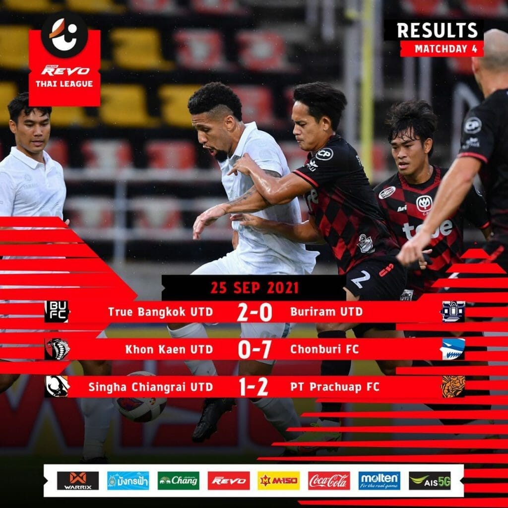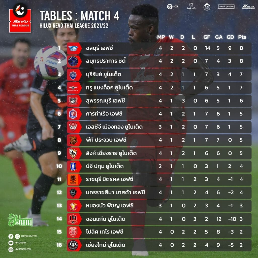 สรุปเมื่อจบนัดที่ 4 ชลบุรี เอฟซี ขึ้นมาเป็นจ่าฝูง คะแนนเท่ากับ สมุทรปราการซิตี้ ที่ฟอร์มยังดีต่อเนื่อง ที่ 8 คะแนนเท่ากัน “ฉลามชล” มีลูกได้เสียดีกว่า