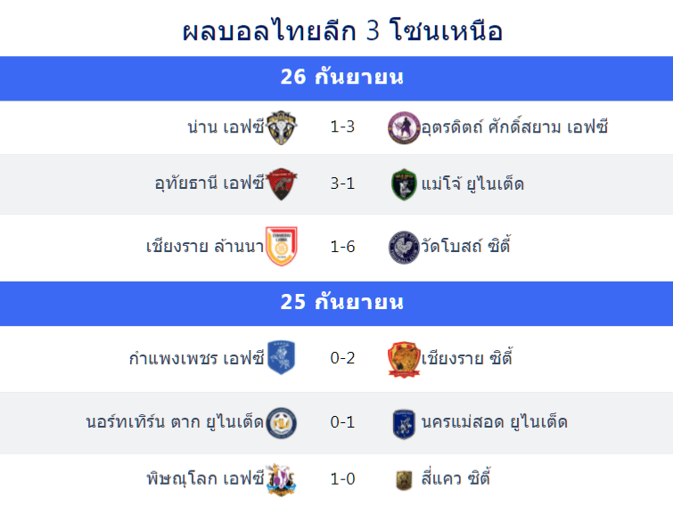 ไทยลีก 3 หรือ “มังกรฟ้าลีก” สัปดาห์นี้เป็นการแข่งขันครบทุกโซนแล้ว โดยที่โซนกรุงเทพฯและปริมณฑล เริ่มมีการแข่งขันนัดแรก 7 คู่ที่ลงทำการแข่งขัน ไม่มีผลเสมอเลยแม่แต่สนามเดียว