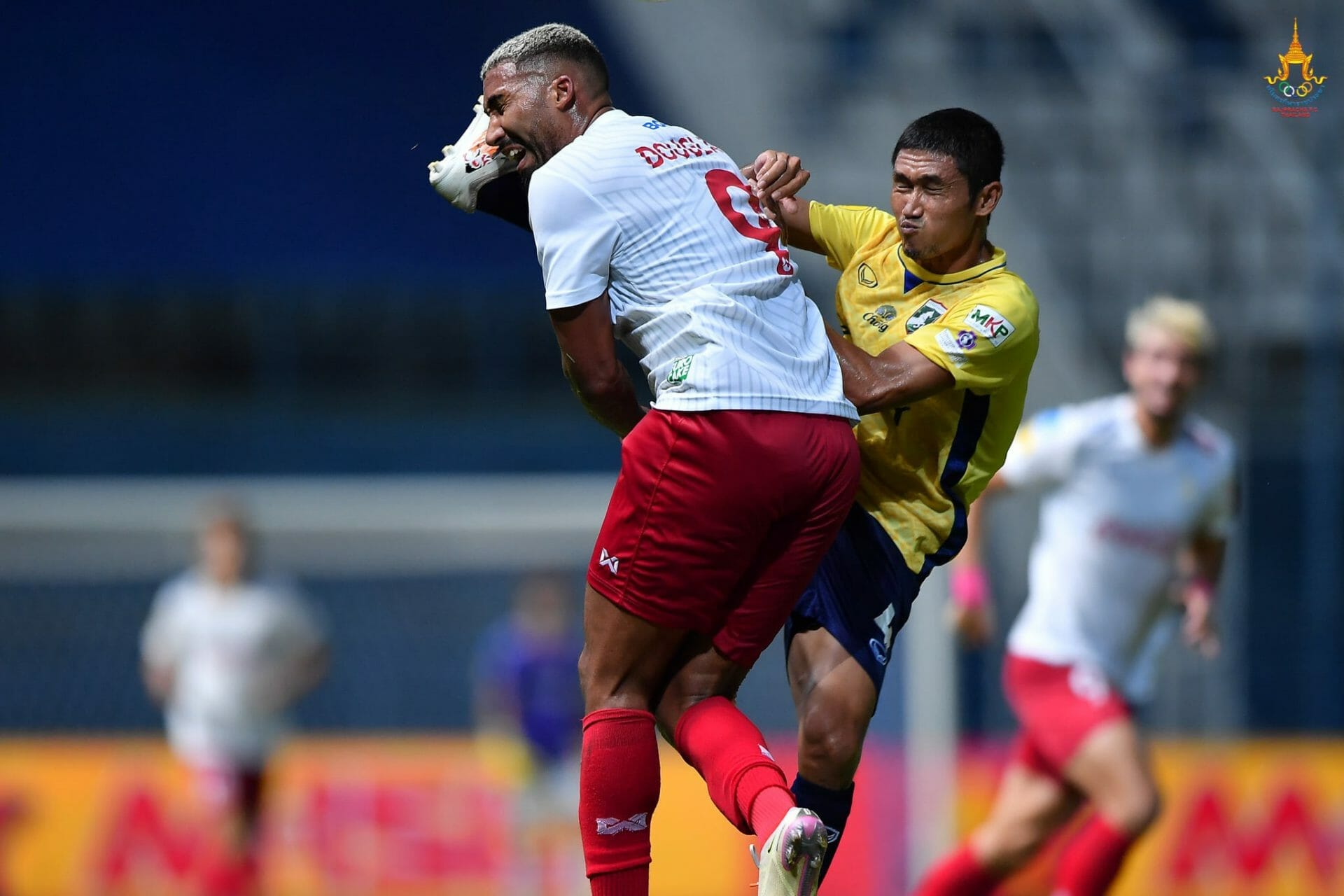 เกมถัดมาเป็นเกมไทยลีก 2 ที่ ราชประชา เปิดบ้านรับ แพร่ ยูไนเต็ด จังหวะที่ อดิศร หนูนารถ ผู้เล่นของแพร่ ยูไนเต็ด ยกเท้าสูงใส่ ดักลาส เฟอร์ไรร่า ผู้เล่นราชประชา