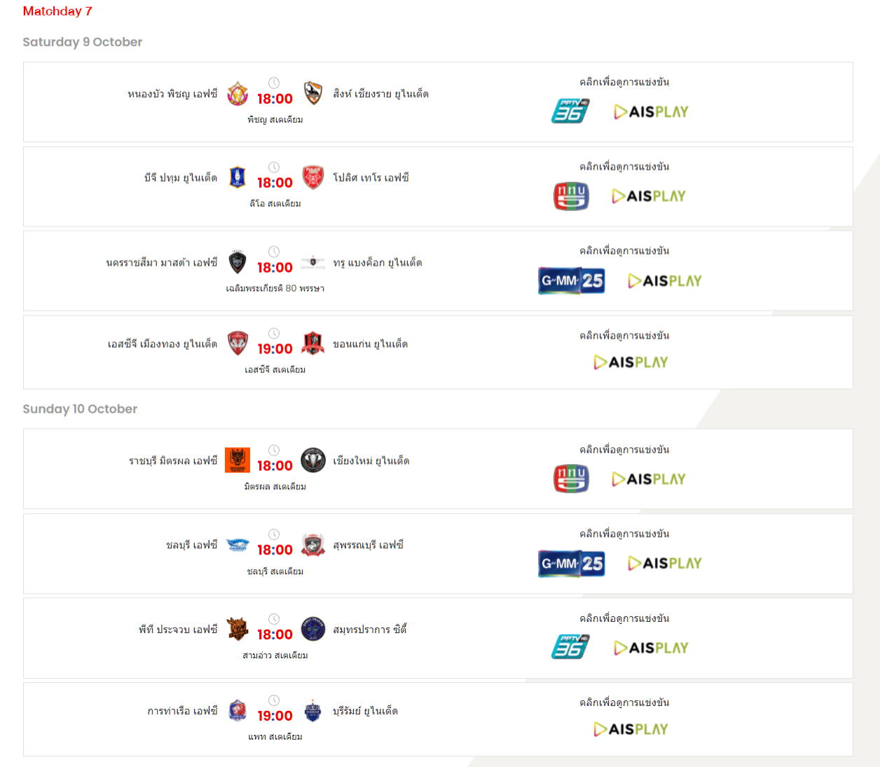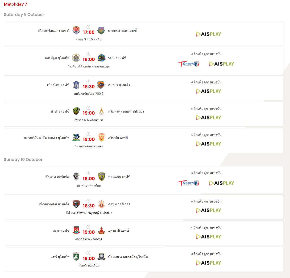 นั่นก็เป็นภาพรวมของผลการแข่งขันและสถานการณ์บนตารางคะแนนในแต่ละลีกของบอลไทย