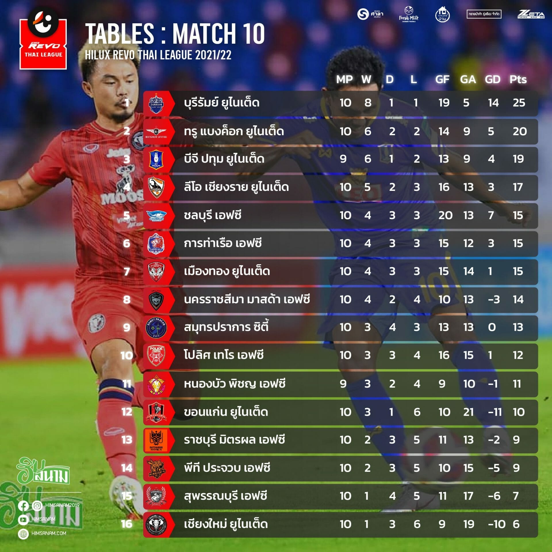 อันดับสองตามหลัง 5 คะแนน ทรู แบงคอก ยูไนเต็ด นัดล่าสุดยังคงหาชัยชนะไม่เจอเป็นนัดที่ 2 โดนหนองบัว พิชญ เอฟซี บุกมาแบ่งแต้มได้ท้ายเกม ส่วนอันดับ 3 ที่แข่งน้อยกว่าเพื่อน แชมป์เก่า บีจี ปทุม ยูไนเต็ด 3 คะแนน ล่าสุดจากการบุกไปชนะทีมอันดับสุดท้าย เชียงใหม่ ยูไนเต็ด ทำให้ช่องว่างจากจ่าฝูงยังคงเป็น 6 คะแนน