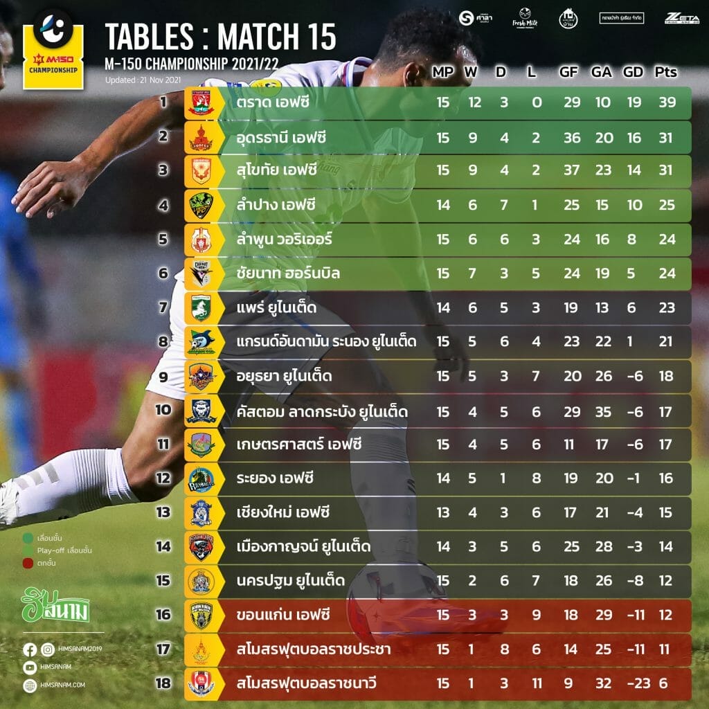 และที่ยังคงยืนหยัดอยู่ในอันดับสุดท้ายก็ยังคงเป็น เชียงใหม่ ยูไนเต็ด ที่นัดล่าสุดพวกเขาก็ยังเก็บแต้มไม่ได้ โดยพ่ายคารังต่อ ลีโอ เชียงราย ยูไนเต็ด ในศึกดาร์บี้แมทช์ล้านนา