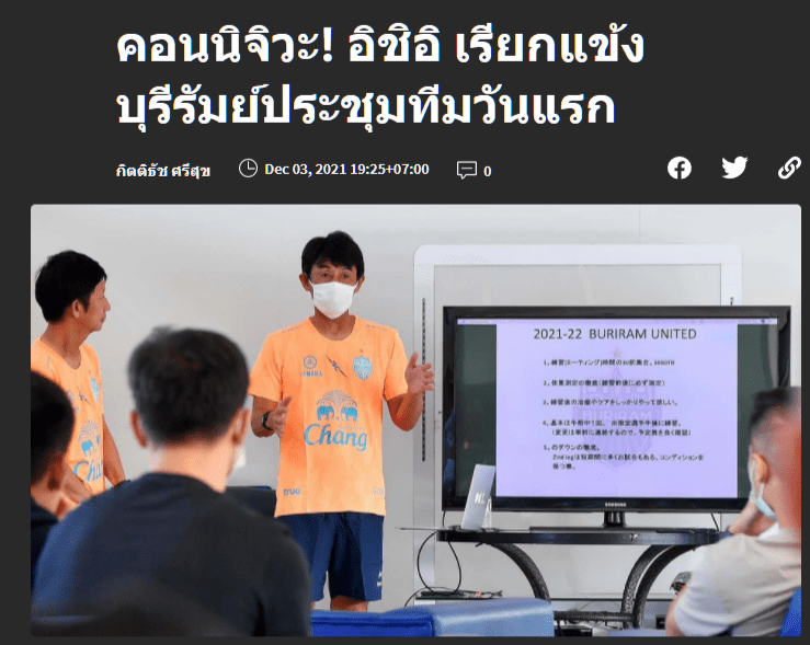 วันที่ 1 ธันวาคมที่ผ่านมา มาซาทาดะ อิชิอิ กุนซือชาวญี่ปุ่น อดีตกุนซือของ สมุทรปราการ ซิตี้ ได้เข้ามาร่วมประชุมกับทีมงานที่นำโดยประธานเนวิน อันเป็นที่แน่นอนแล้วว่า อิชิอิ จะรับคุมทัพแทนในช่วงเลกสองนี้