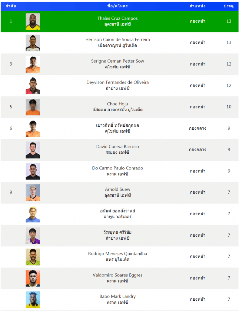 นักเตะที่ยิงเข้ากรอบมากที่สุด ตกเป็นของ Herlison Caion กองหน้าของ เมืองกาญจน์ ยูไนเต็ด 25  ครั้ง แปลงไปเป็น 13 ประตู ครองดาวซัลโวร่วมกับ Thales Campos ของ อุดรธานี เอฟซี แต่ที่น่าแปลกใจก็คือ Thales Campos ไม่ติด 1 ใน 5 ของ นักเตะที่ยิงเข้ากรอบ แปลว่าเขามีความคมมากกว่าในการยิงเข้ากรอบและเป็นประตู