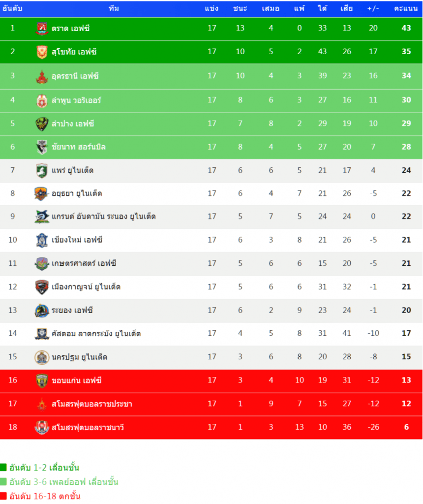 อันดับ 5 ลำปาง เอฟซี เมื่อจบนัดตกค้างเมื่อกลางสัปดาห์ พวกเขาเก็บแต้มเพิ่มเป็น 29 คะแนน เกาะอยู่ในโซนเพลย์ออฟอย่างเหนียวแน่น ตามมาด้วย ชัยนาท ฮอร์นบิล อันดับที่ 6 ทีมสุดท้ายในพื้นที่เพลย์ออฟ นัดล่าสุดทำได้แค่เสมอ ระยอง เอฟซี ทำให้คะแนนเพิ่มมาเป็น 28 คะแนน ทิ้ง แพร่ ยูไนเต็ด ที่ยังหาฟอร์มเก่งไม่เจอ แถมยังหลุดพื้นที่ลุ้นเลื่อนชั้นเป็น 4 คะแนน