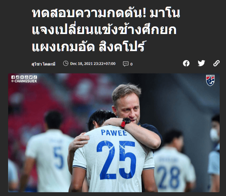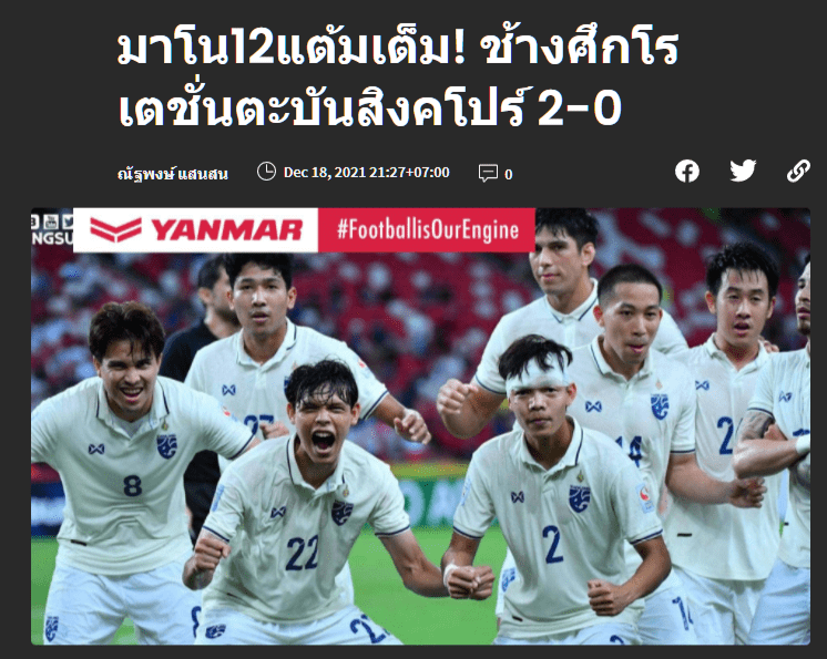 มาเริ่มกันที่ผลงานของทีมชาติไทย ในรายการชิงแชมป์อาเซียน AFF Suzuki Cup 2020 ที่ประเทศสิงคโปร์ หลังจากนัดแรกที่เราสามารถกำชัยเหนือ ติมอร์ เลสเต้ มาได้ นัดที่ 2 ขุนพลช้างศึกก็ยังทำผลงานได้ดีด้วยการเอาชนะ ทีมชาติเมียนมาร์ ไปได้ 4 – 0