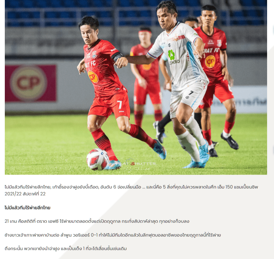 แต่เมื่อเกมที่ 22 พวกเขาต้องปราชัยเป็นครั้งแรกในลีกไปเสียแล้ว ก็ไม่ใช่ใครที่ไหน ทีมที่กำลังลุ้นเลื่อนชั้นอัตโนมัติอีกทีม “ราชันโคขาว” ลำพูน วอริเออร์ ที่บุกมาสร้างรอยมลทินถึงเมืองตราด ทำให้ถึงตอนนี้ ไม่เหลือทีมไร้พ่ายในไทยลีก 2 อีกแล้วในฤดูกาลนี้