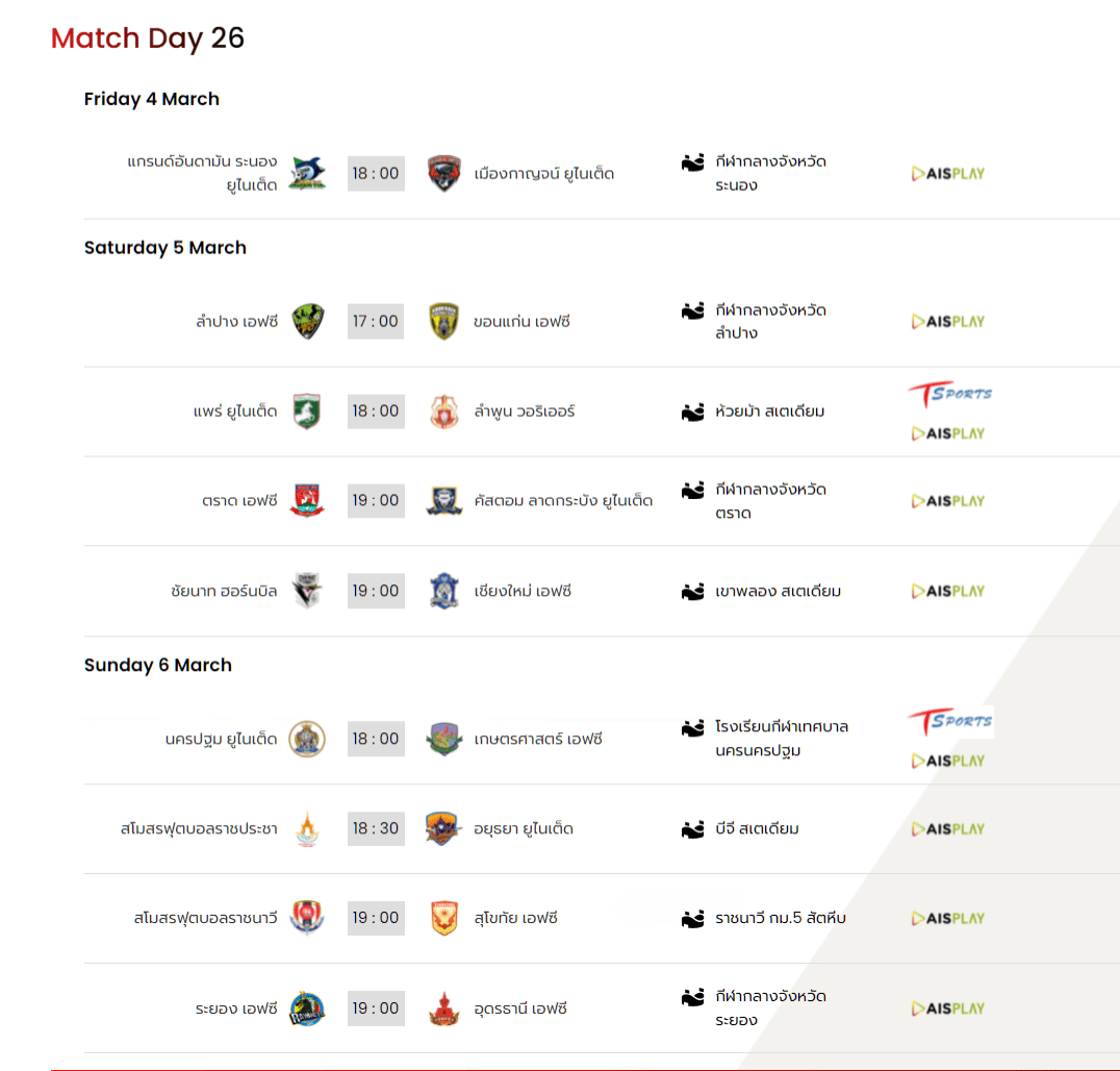 ส่วนที่ตามมาติด ๆ ก็พากันออกเสมอกันทั้งหมด ไม่ว่าจะเป็น ลีโอ เชียงราย ยูไนเต็ด ชลบุรี เอฟซี และ เอสซีจี เมืองทอง ยูไนเต็ด ทำให้กลุ่มนี้ยังขึ้นไปกดดันกลุ่มแย่งรองจ่าฝูงไม่ได้
