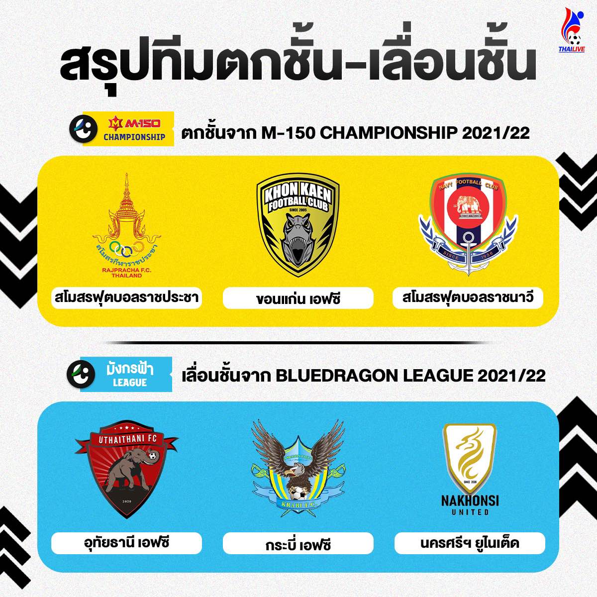 ตกชั้นไปสู่ไทยลีก 3 สโมสรฟุตบอลราชประชา ขอนแก่น เอฟซี และ สโมสรฟุตบอลราชนาวี