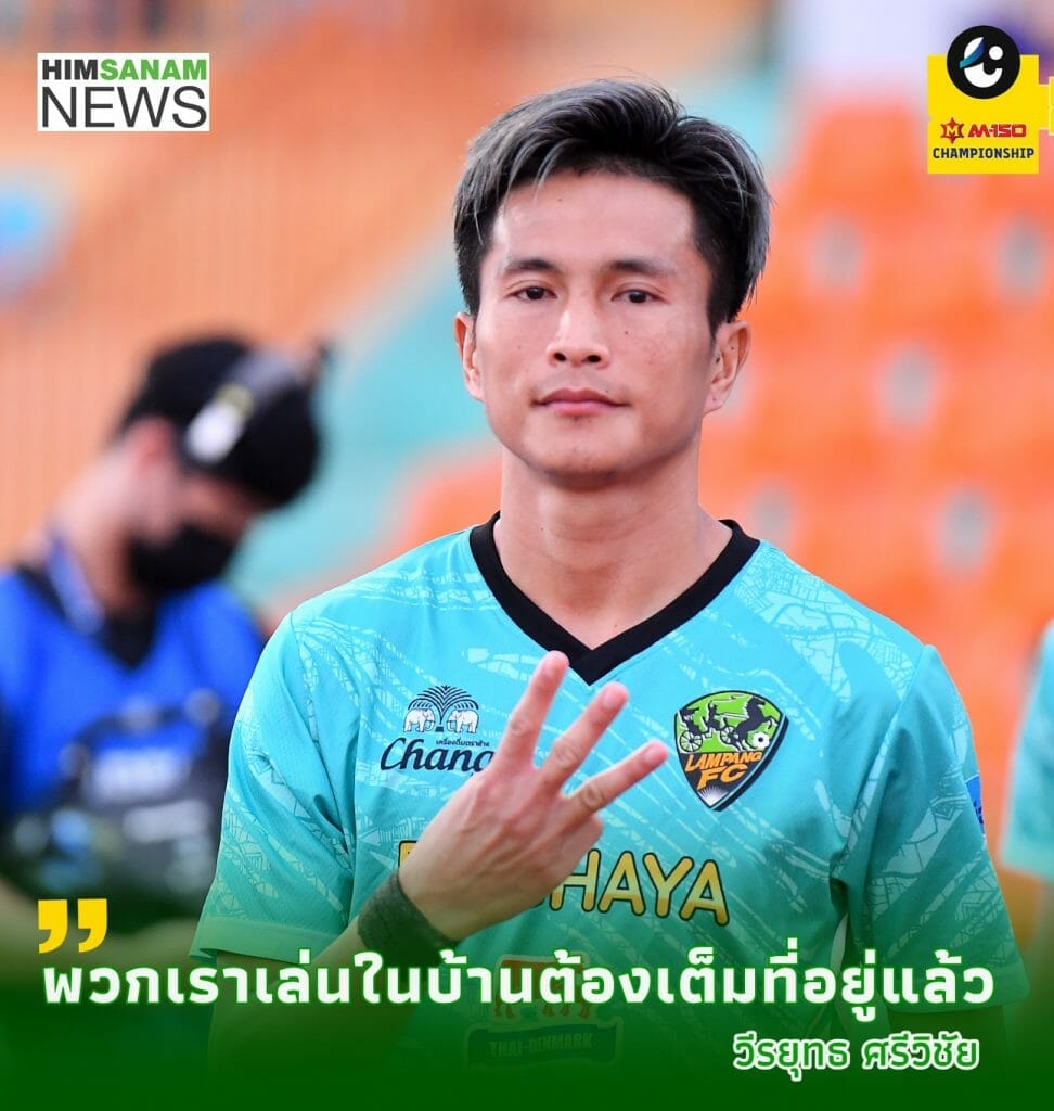 พวกเราก็ต้องทำเต็มที่ในทุกๆ นัดอยู่แล้วแต่ที่จะต้องเน้นหนักเป็นพิเศษก็จะเป็นเรื่องของสมาธิ การยืนระยะในเกม ซึ่งหากเราทำได้ไม่ดีโอกาสพลาดก็จะมีสูง ผมเชื่อว่าเกมการแข่งขันนัดนี้จะเป็นเกมที่สนุก สมกับที่แฟนบอลของทั้งสองทีมรอคอย พวกเราเล่นในบ้านเราต้องเต็มที่อยู่แล้ว ผมเชื่อว่าพวกเราทุกคนต้องทำได้ ฝากแฟนบอลพี่น้องชาวลำปาง ติดตามให้กำลังใจพวกเราด้วยครับ”