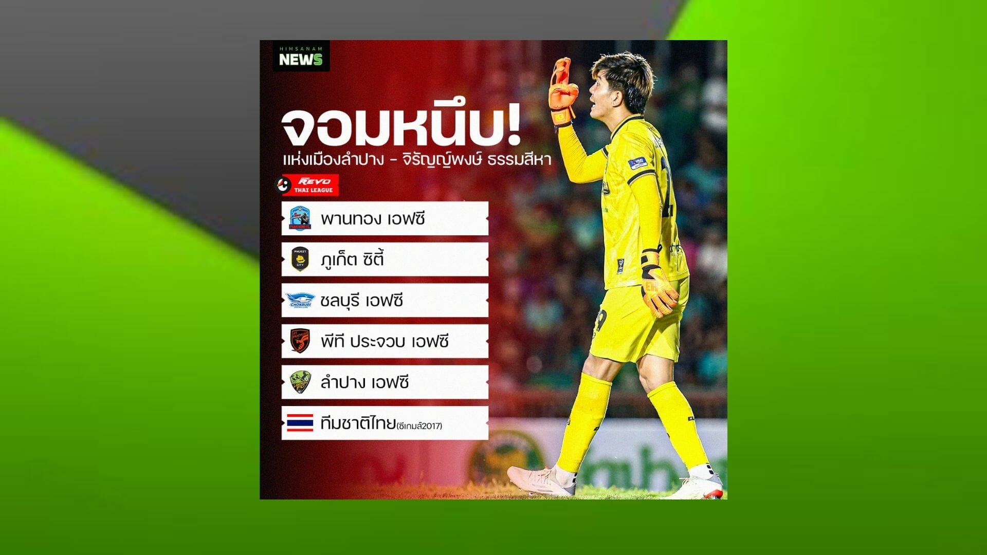 โดย “จิรัญญ์พงษ์ ธรรมสีหา” จอมหนึบของลำปาง เอฟซี ถูกพูดถึงเป็นอย่างมากในฟอร์มการเล่นของเขาหลังทำผลงานได้อย่างยอดเยี่ยมในการเซฟช่วยทีมเก็บ 4 คะแนน จาก 2 นัดในไทยลีก 1