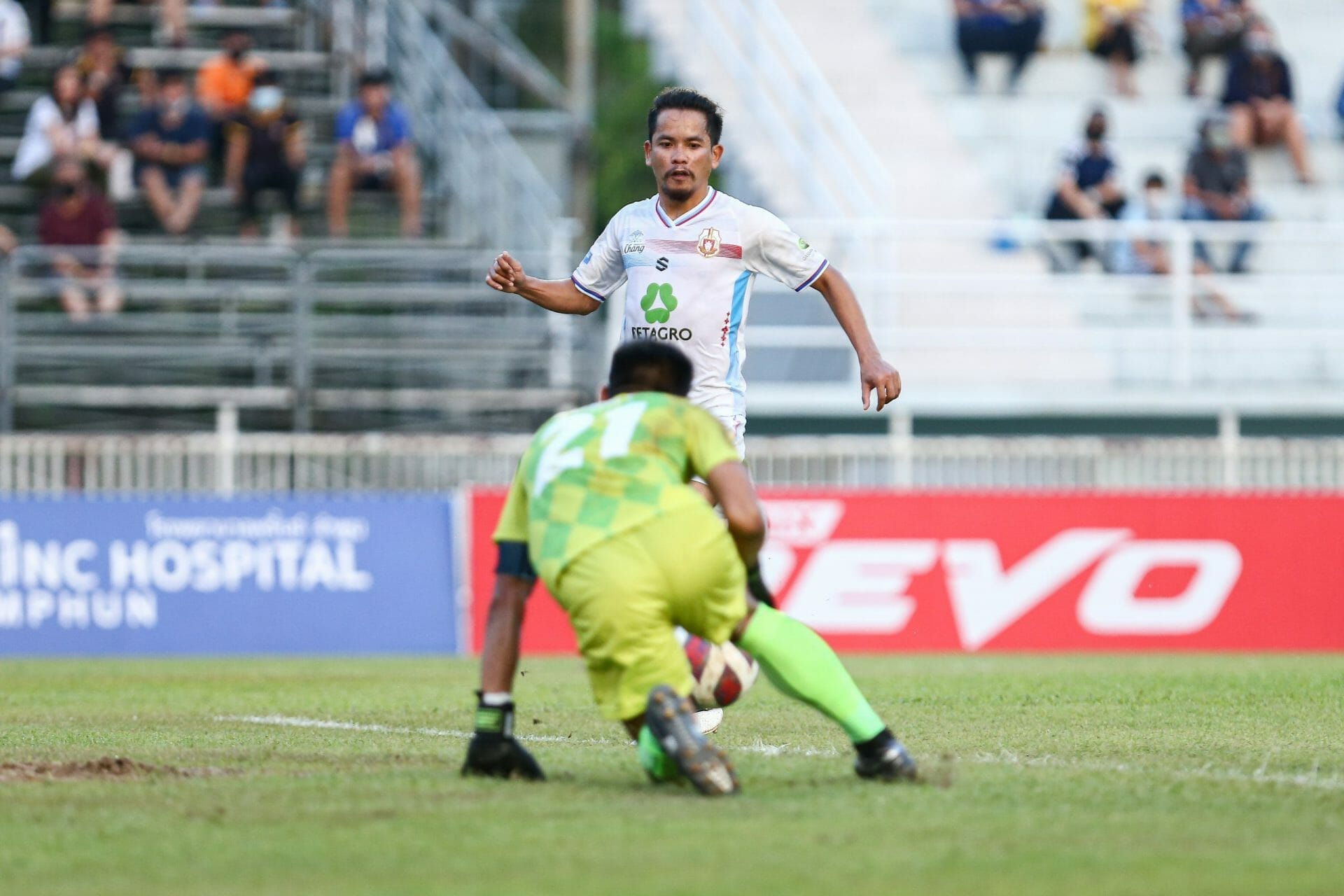 “แบงค์” จีระชัย ละดาดก แดนกลางตัวจี๊ด “ราชันโคขาว” ลำพูน วอริเออร์ รู้สึกดีใจหลังหายจากอาการบาดเจ็บกลับมาลงสนามและสามารถยิงประตูได้ เรียกความมั่นใจกลับมา ในนัดเปิดบ้านชนะ “ตะหานน้ำ” ราชนาวี เอฟซี 4-0 พร้อมก้าวขึ้นตำแหน่งจ่าฝูงT2 ขอรักษาผลงานให้ดีต่อไปเพื่อพาทีมเลื่อนชั้นแบบอัตโนมัติ