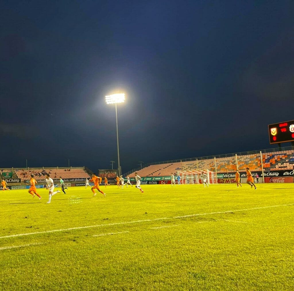 นาทีที่ 37 ชาคริต ระวันประโคน ได้บอลทางด้านขวา ก่อนที่จะเปิดเข้ากลาง แต่ก็ยังติดกองหลังทีมเยือน