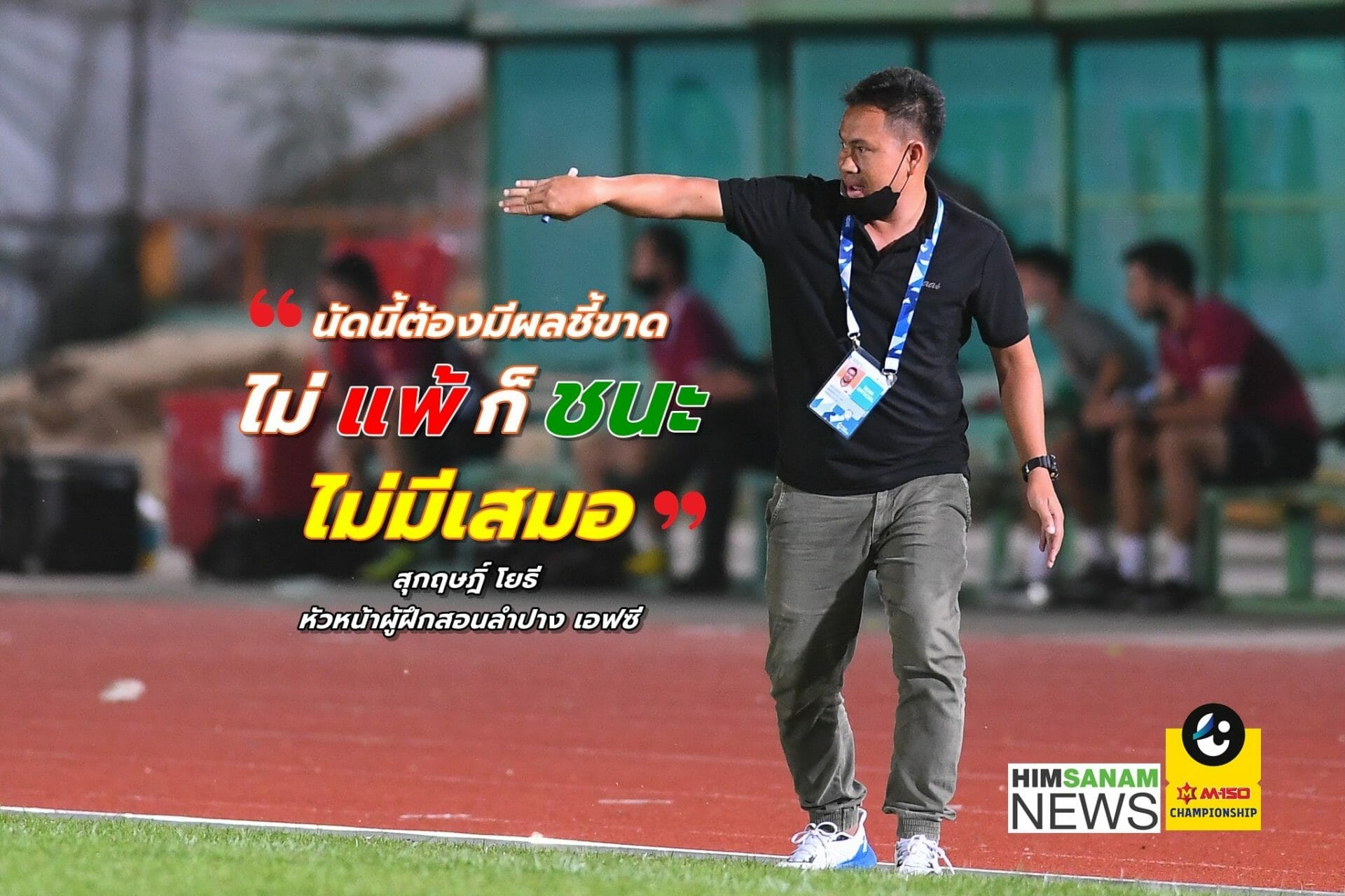 สำหรับการแข่งขันในวันอาทิตย์นี้ เราจะต้องเดินทางไปเยือน ลำพูน วอริเออร์ ซึ่งทั้งแต้มและอันดับตอนนี้ใกล้เคียงกันมาก ลำพูน วอริเออร์ ถือเป็นทีมที่ดี ทั้งตัวผู้เล่น และระบบของทีม ถือเป็นงานหนักของเราพอสมควรแต่ผมก็เชื่อว่านักเตะทุกคนของลำปางเอฟซี พร้อมที่จะลุยเต็มที่ในนัดนี้ พวกเราจะเล่นตามสไตล์ของเราคือการเปิดเกมบุกเข้าแลก ผมเชื่อว่าเกมการแข่งขันนัดนี้จะเป็นอะไรที่สนุกสูสี และที่สำคัญเกมนี้ผมก็เชื่อว่าจะไม่มีคำว่า เสมอ แน่นอน ขอสู้กันอย่างเต็มที่เกมเยือนเกมนี้ไม่ชนะก็แพ้เท่านั้นครับ”