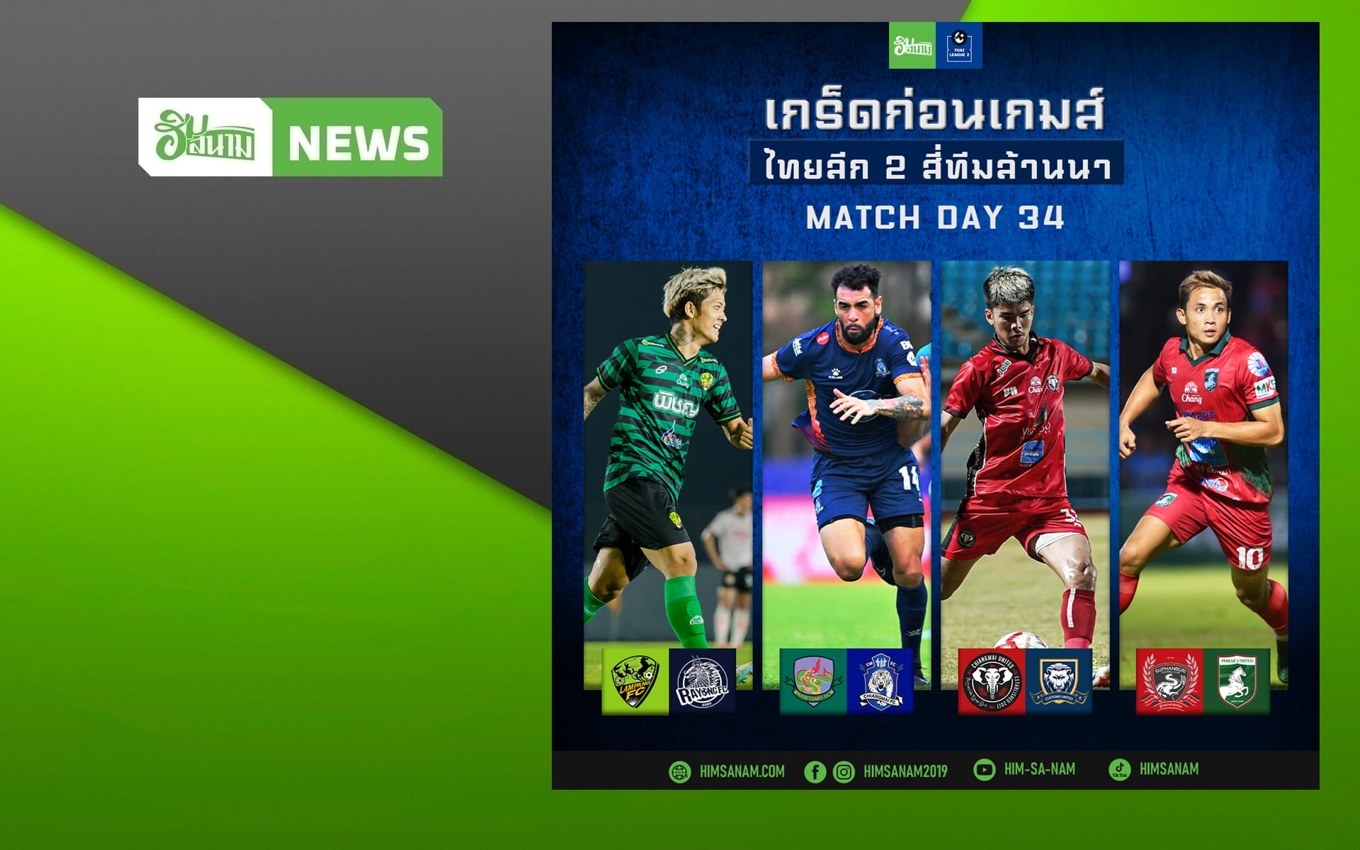 โปรแกรมไทยลีก 2 Matchday 34 นัดสุดท้ายของฤดูกาล