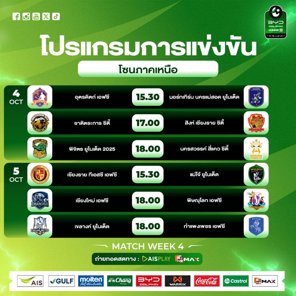 สุดสัปดาห์แห่งความสนุกกับ ไทยลีก 3 โซนเหนือ สุดสัปดาห์นี้ระอุตั้งแต่บ่ายวันเสาร์ที่ 4 ตุลาคม 2568 ไฮไลท์สำคัญอยู่ที่การดวลกันของสองทีมไร้พ่ายเพื่อแย่งบัลลังก์จ่าฝูง ขณะที่โซนท้ายตารางก็สู้ยิบตาเพื่อสามแต้มแรก มาดูกันว่าแต่ละสนามจะเดือดแค่ไหน!