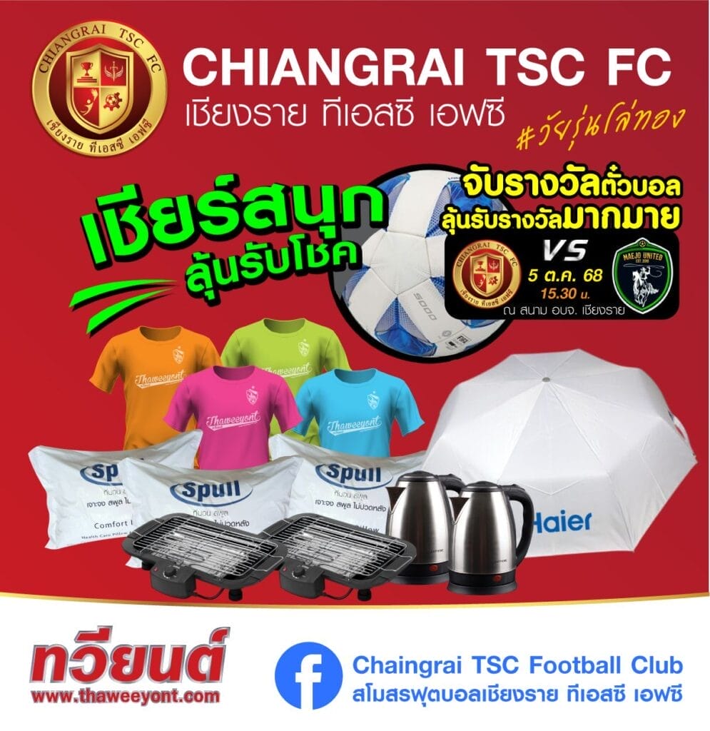 ผลการแข่งขันที่คาด: เชียงราย ทีเอสซี เอฟซี แพ้ แม่โจ้ ยูไนเต็ด 0-2