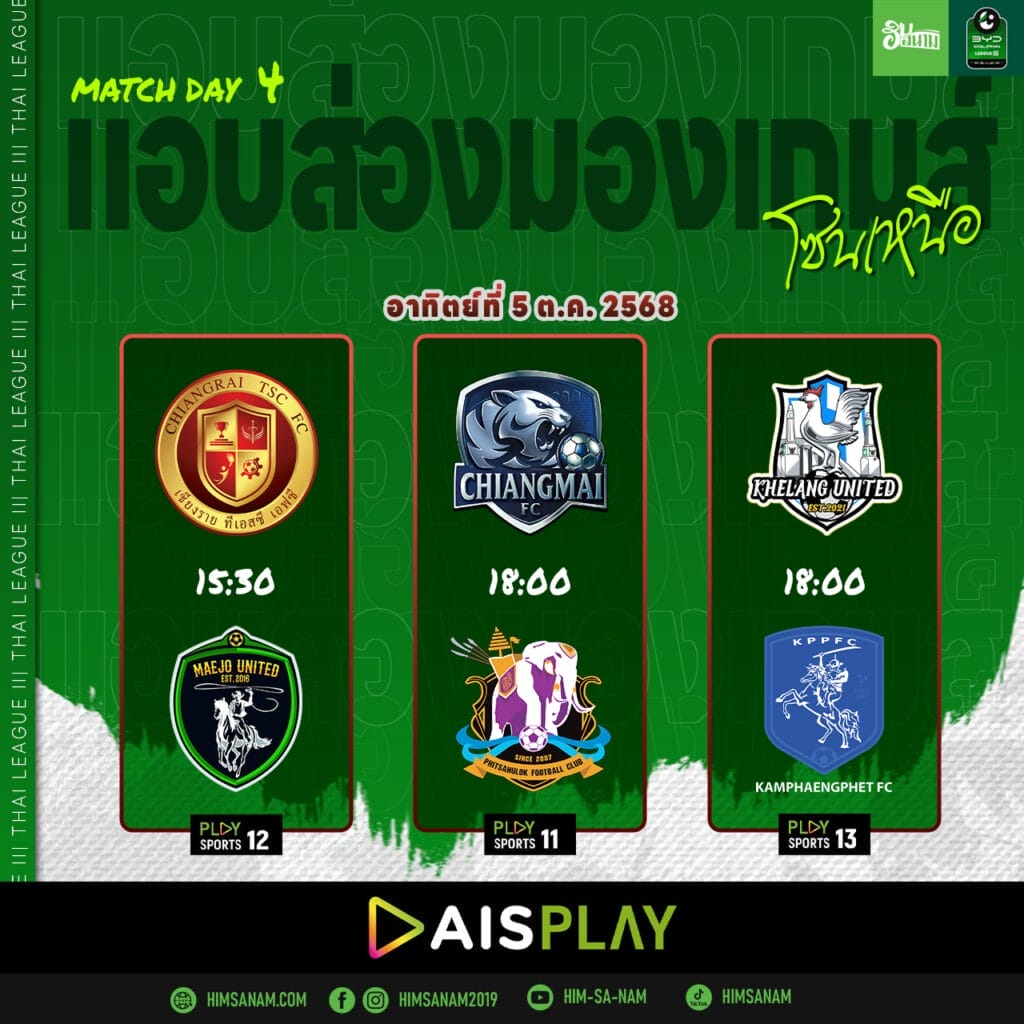 ผลการแข่งขันนัดที่ผ่านมา เชียงราย ทีเอสซี เอฟซี แพ้ นอร์ทเทิร์น นครแม่สอด ยูไนเต็ด 0-1 แม่โจ้ ยูไนเต็ด เสมอ อุตรดิตถ์ เอฟซี 2-2