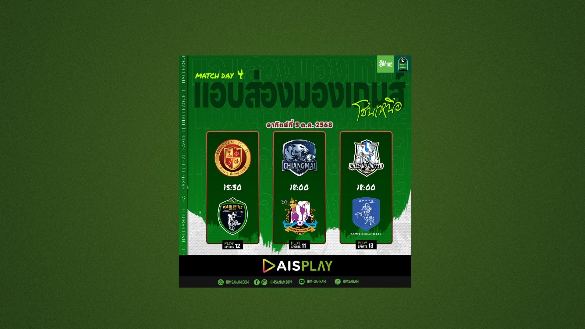 ผลการแข่งขันนัดที่ผ่านมา เชียงราย ทีเอสซี เอฟซี แพ้ นอร์ทเทิร์น นครแม่สอด ยูไนเต็ด 0-1 แม่โจ้ ยูไนเต็ด เสมอ อุตรดิตถ์ เอฟซี 2-2