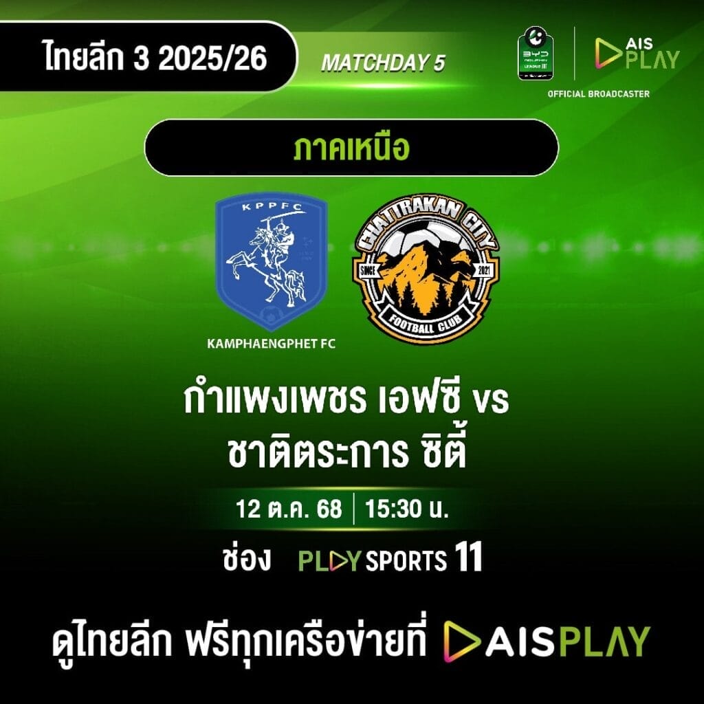 ไทยลีก 3 โซนเหนือ นัดที่ 5 วันอาทิตย์ที่ 12 ตุลาคม 2568