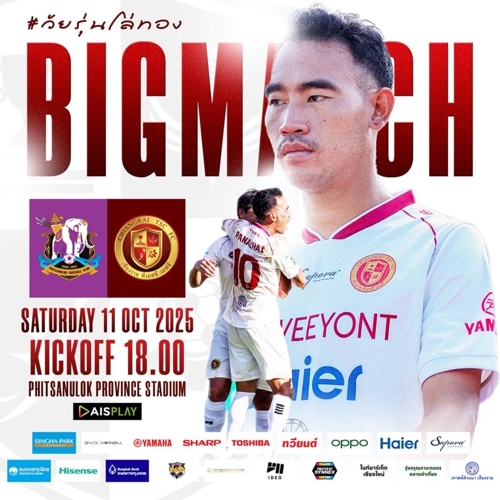 พิษณุโลก เอฟซี (อันดับ 2) พบ เชียงราย ทีเอสซี เอฟซี (อันดับ 1)