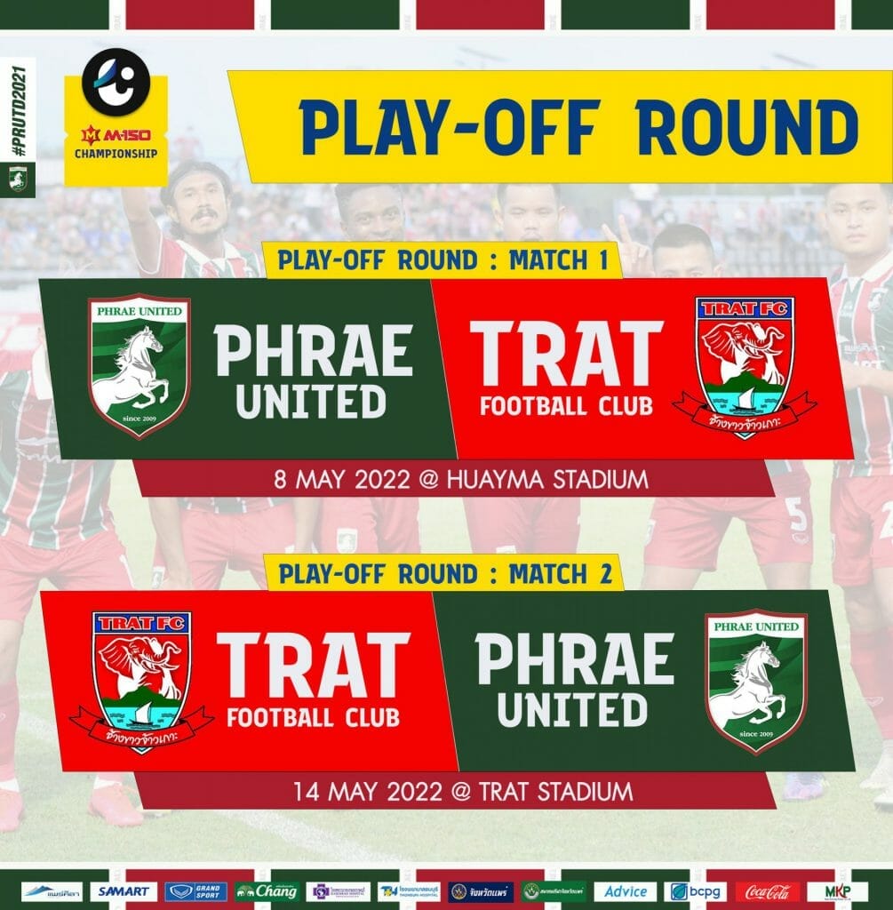 M-150 แชมเปี้ยนชิพ ฤดูกาล 2021/23 รอบ PLAY-OFF รอบรองชนะเลิศ (นัดที่ 1) แพร่ ยูไนเต็ด พบ ตราด เอฟซี วันอาทิตย์ที่ 8 พฤษภาคม 2565