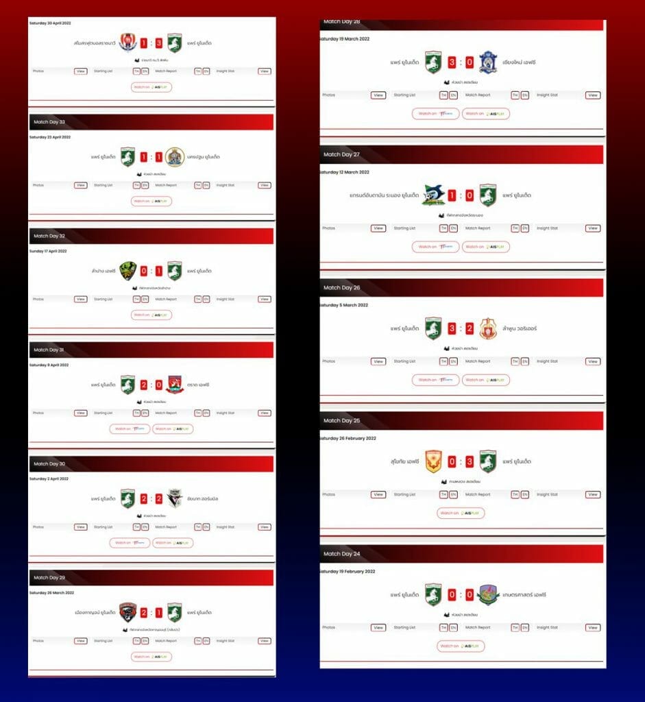 สำหรับผลงานของ”โค้ชด๊าท” ธงชัย รุ่งเรืองเลิศ นับตั้งแต่เข้าคุมทีม แพร่ยูไนเต็ด รวม 11 เกม ชนะ 6 เสมอ 3 แพ้ 2 โดยผลงานในการพบ กับทีม Top Five สามารถพาทีมชนะ ลำพูนวอริเออร์ / สุโขทัย เอฟซี / ตราด เอฟซี / ลำปาง เอฟซี และ เสมอกับ ชัยนาทฮอร์นบิล