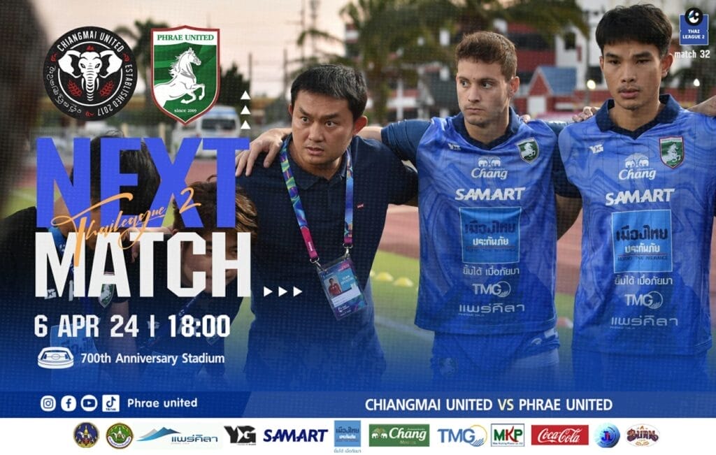สำหรับนัดต่อไปของทัพอาชา คือเกมล้านนาดาร์บี้ แพร่ ยูไนเต็ด จะบุกเยือน เชียงใหม่ ยูไนเต็ด ซึ่ง “ช้างเผือก” ยังมีลุ้นพื้นที่เพลย์ออฟ แข่งขันวันเสาร์ที่ 6 เม.ย. 67 นี้ เวลา 18.00 น. ที่สนามกีฬาสมโภชเชียงใหม่ 700 ปี