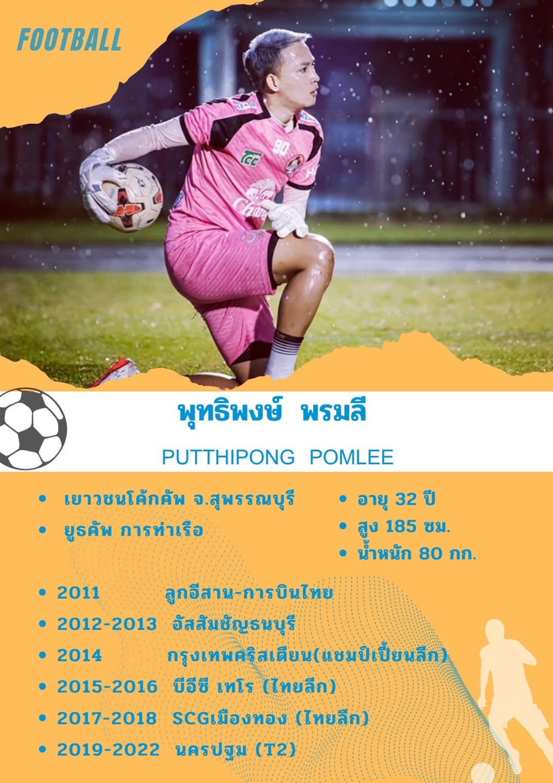เคยค้าแข้งกับ ลูกอีสาน-การบินไทย, อัสสัมชัญธนบุรี, กรุงเทพคริสเตียน, บีอีซี เทโร, เมืองทอง ยูไนเต็ด และ นครปฐม ยูไนเต็ด ในฤดูกาลล่าสุด ที่สำคัญ “เล็ก” ยังมีฝีมือทำอาหารขั้นเทพ เชฟกระทะเหล็กยังต้องอาย