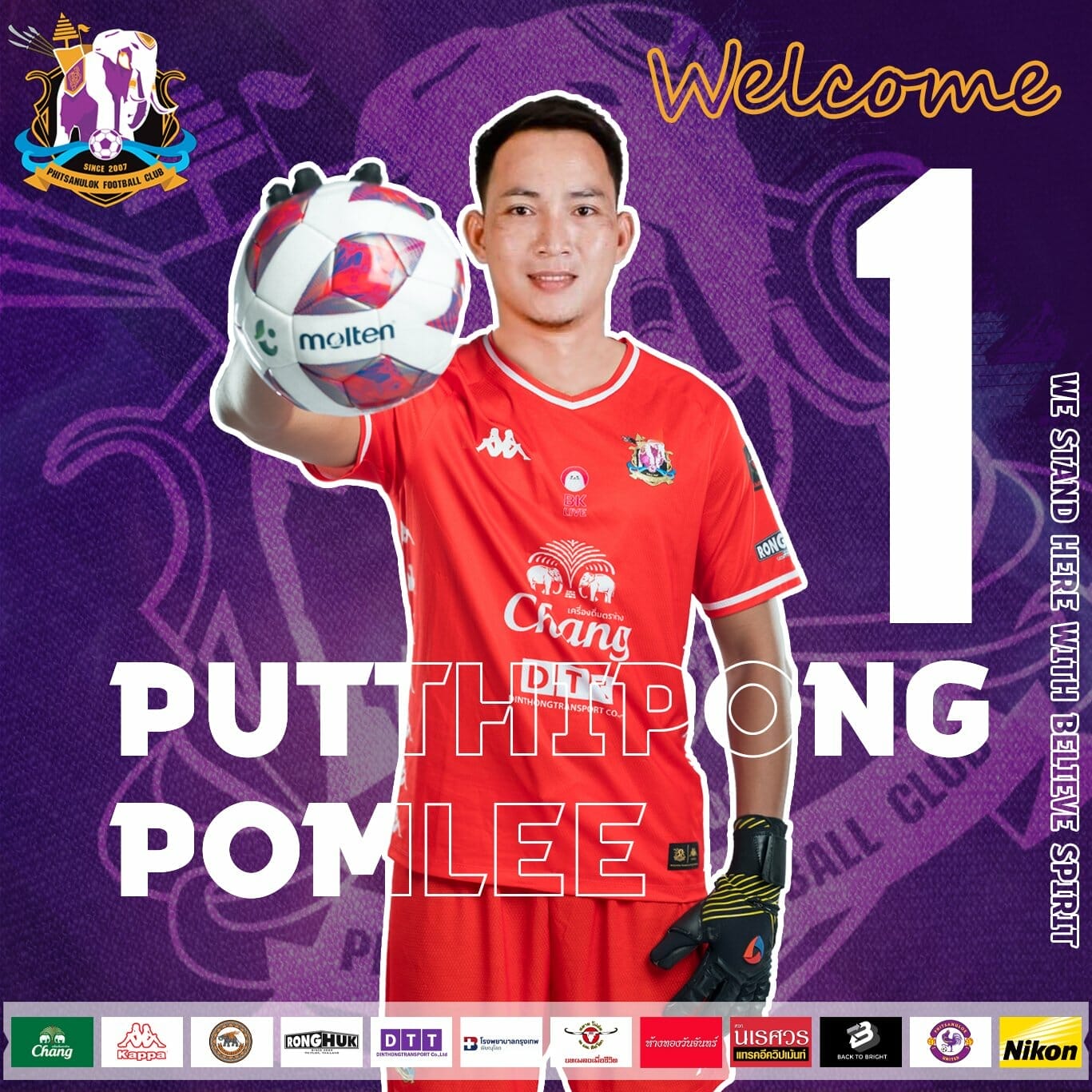 “เล็ก”พุทธิพงษ์ พรมลี ผู้รักษาประตูวัย 32 ปี จากสโมสร นครปฐม ยูไนเต็ด ทีมในไทยลีค 2 จะสวมเสื้อหมายเลข 1 ให้กับ พิษณุโลก เอฟซี