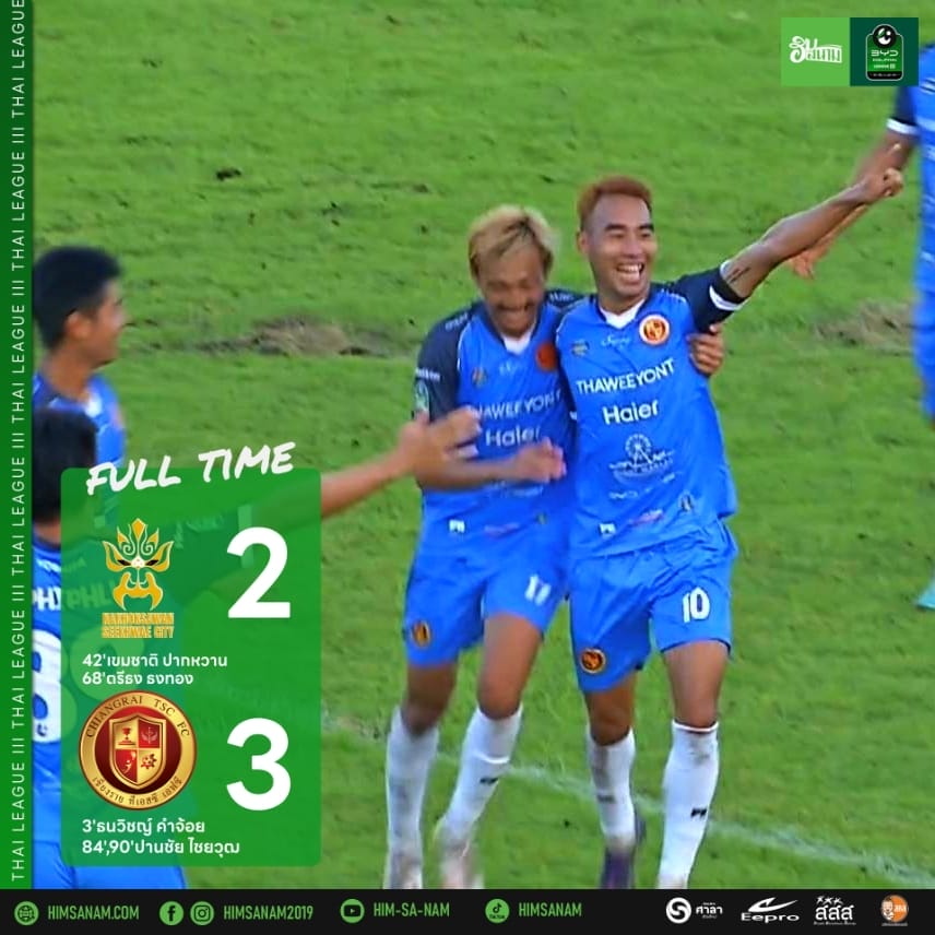 “วัยรุ่นโล่ทอง” เชียงราย ทีเอสซี เอฟซี บุกไปเฉือนชนะ “นักรบเอ็งกอ” นครสวรรค์ สี่แคว ซิตี้ 3-2 ถือเป็นชัยชนะนัดแรกในรอบ 6 นัดของพวกเขา ส่วนสี่แควฯ ก็แพ้เป็นเกมแรกหลังชนะมา 2 นัดติด