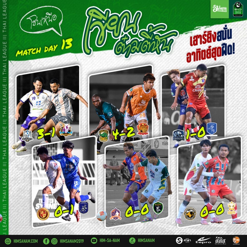 บทสรุปศึก ไทยลีก 3 โซนเหนือ สัปดาห์ที่ 13