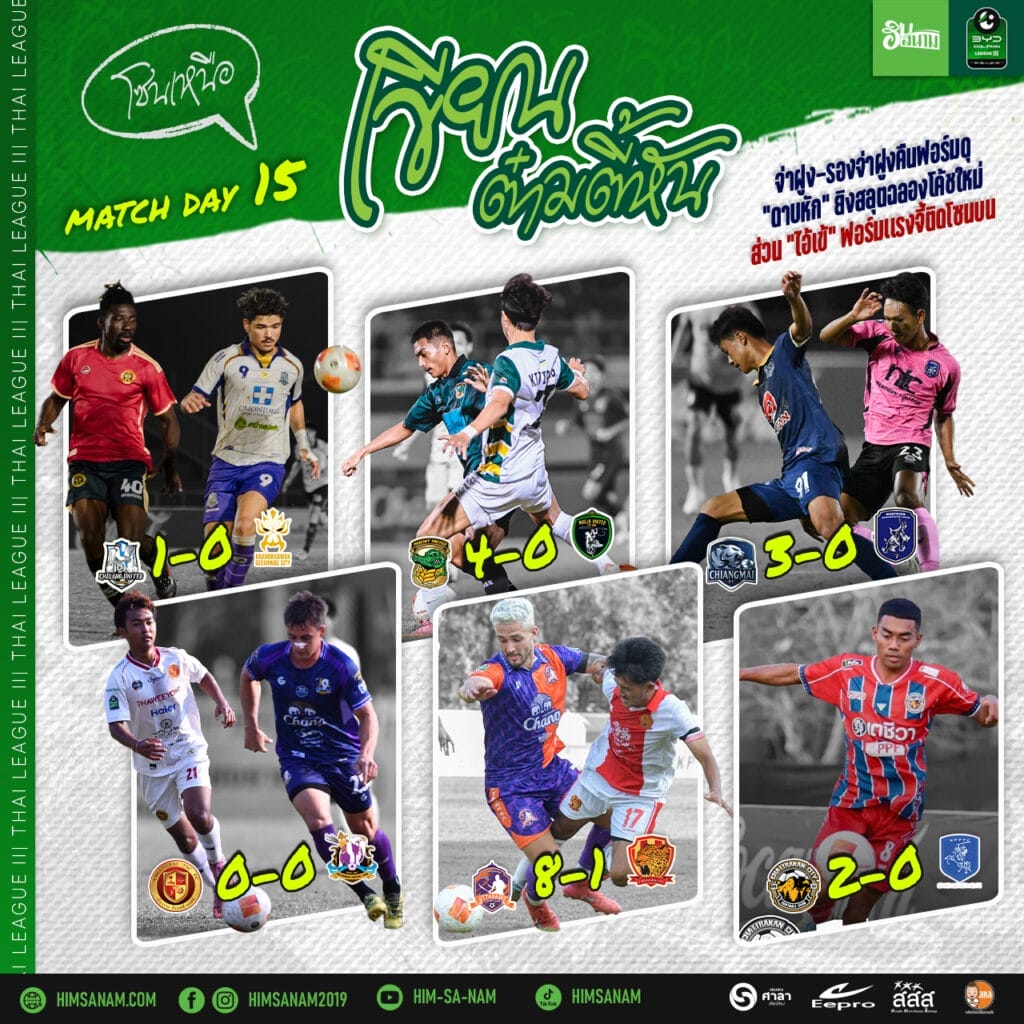 บทสรุปศึก ไทยลีก 3 โซนเหนือ สัปดาห์ที่ 15