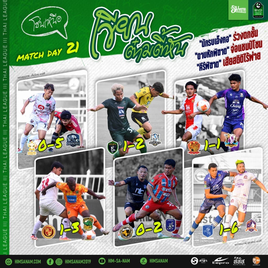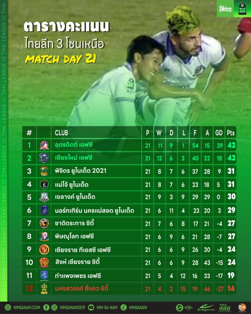 สรุปภาพรวมไทยลีก 3 โซนเหนือ นัดที่ 21