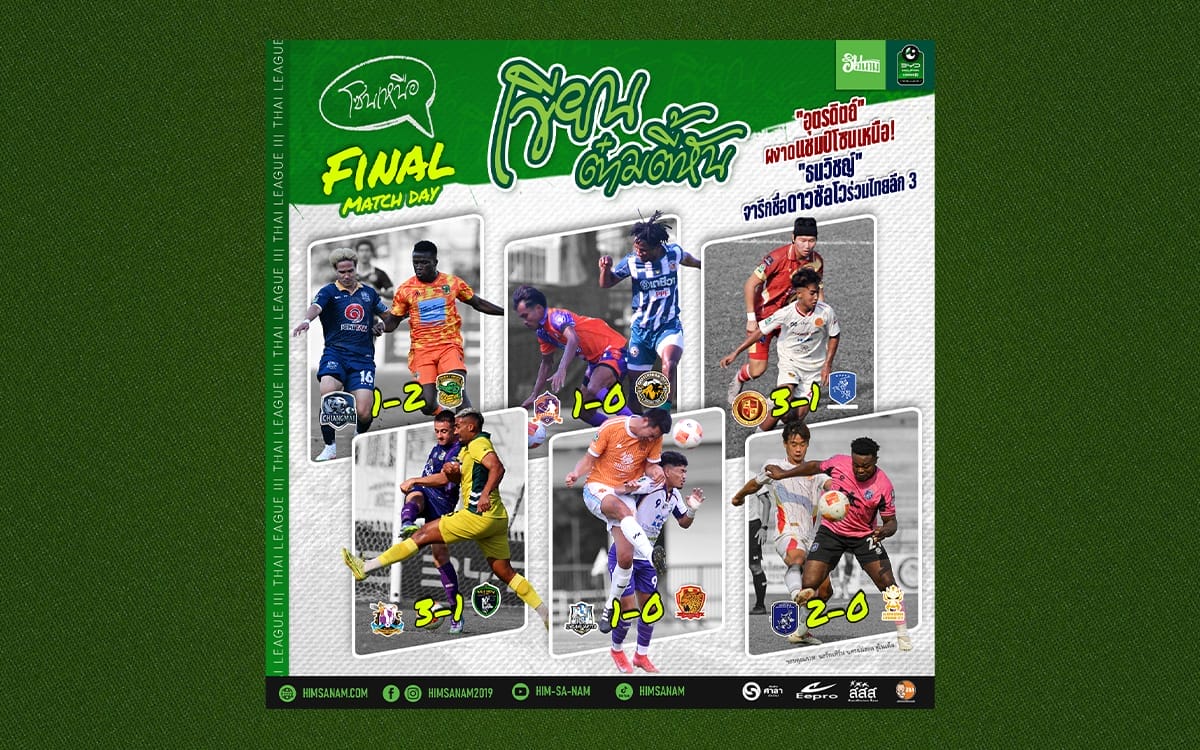 สรุปภาพรวมไทยลีก 3 โซนเหนือ นัดสุดท้าย (แมตช์เดย์ 22): ปิดม่านรูดฉากอย่างเป็นทางการสำหรับฤดูกาล 2025/26 ของโซนภาคเหนือ บทสรุปสุดท้ายตำแหน่ง “แชมป์โซน” ตกเป็นของ “ดาบหักพิฆาต” อุตรดิตถ์ เอฟซี ที่ไม่ปล่อยให้แฟนบอลต้องลุ้นเก้อ เปิดบ้านเชือดชาติตระการฯ คว้าชัยสำคัญส่งท้าย ส่วนรองแชมป์ “พยัคฆ์ล้านนา” เชียงใหม่ เอฟซี ซึ่งไล่ล่าแชมป์มาตลอดทั้งฤดูกาล เสียฟอร์มนัดส่งท้ายพ่ายคาบ้านให้พิจิตร ยูไนเต็ด น้องใหม่ร้ายบริสุทธิ์ที่แรงขึ้นมาจบอันดับ 3 ของตาราง ขณะที่โซนกลางตารางอันดับมีการขยับเปลี่ยนมือจนนาทีสุดท้าย และที่น่าสนใจคือสัปดาห์นี้ “ไม่มีผลเสมอ” เกิดขึ้นแม้แต่สนามเดียว!