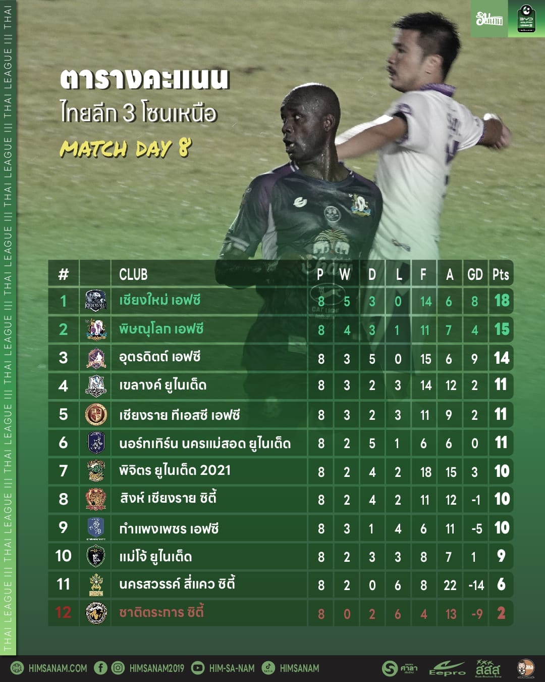 บทสรุปศึก ไทยลีก 3 โซนเหนือ สัปดาห์ที่ 8