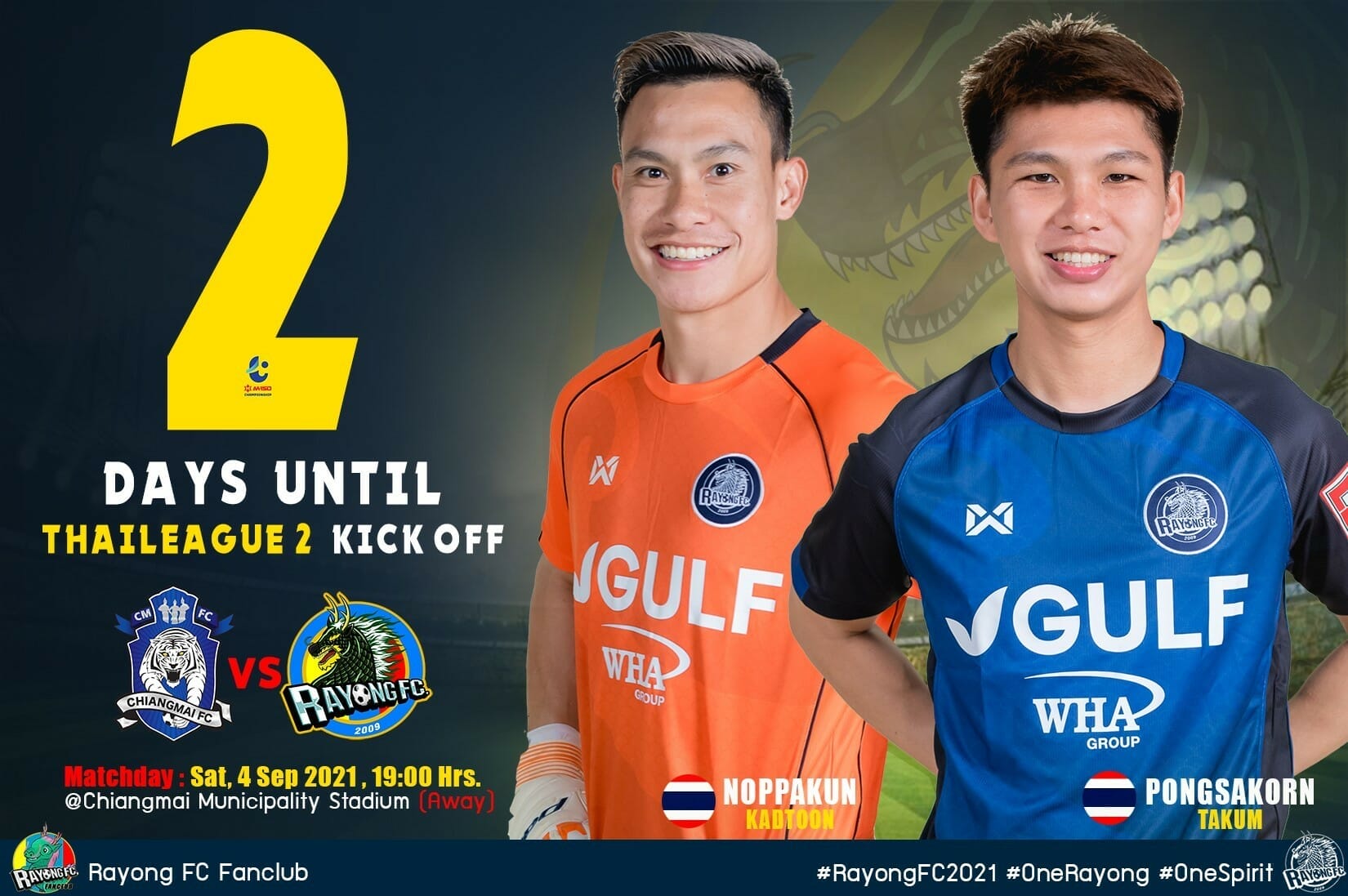 “บูม” พงศกร ตาคำ “มีหลายๆความรู้สึกครับ อย่างแรกเลยก็ดีใจที่ได้กลับบ้านเกิดครับ อีกใจ ก็ตื่นเต้นนิดหน่อย เพราะเป็นนัดเปิดฤดูกาลนัดแรกหลังจากหยุดไปนาน นัดนี้ระยองต้องเดินทางไปเยือนเชียงใหม่เอฟซี ซึ่งก็ถือว่าเดินทางไกลพอสมควร แต่ละทีมในปีนี้ก็มีการเตรียมทีมมาดี ส่วนระยองเอฟซีก็มาเตรียมมาดีเหมือนกัน และพร้อมจะเก็บแต้มมาจากเชียงใหม่ให้ได้ครับ ฝากแฟนๆ ระยองร่วมให้กำลังพวกเราในนัดด้วยนะครับ สำหรับพี่น้องชาวเชียงใหม่ผมก็ยังถือว่าเป็นพี่เป็นน้องเป็นลูกหลานเหมือนเดิมนะครับ”